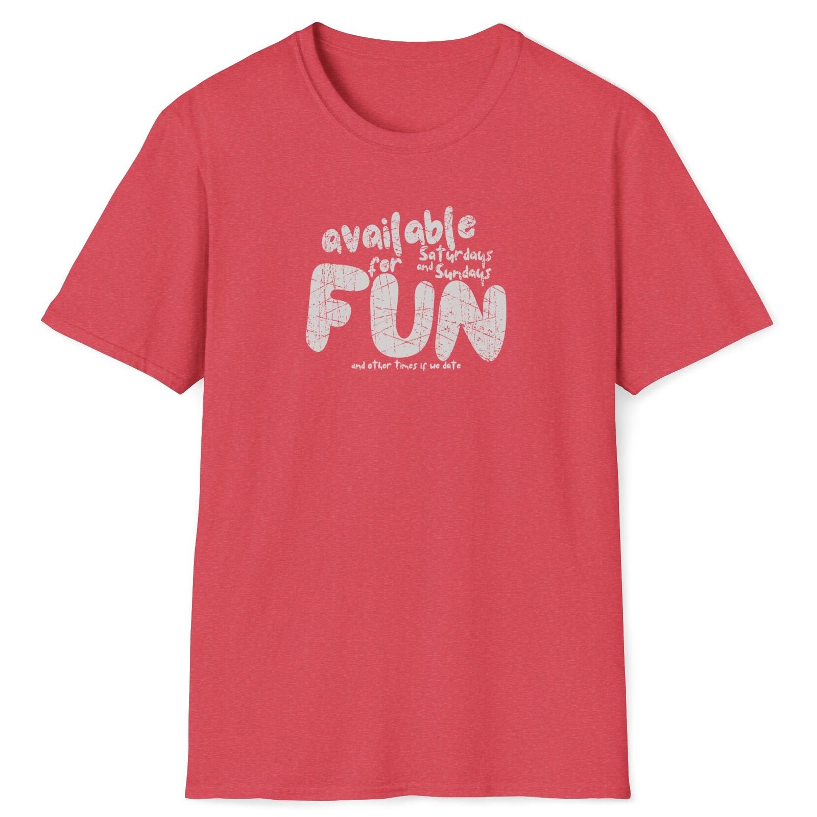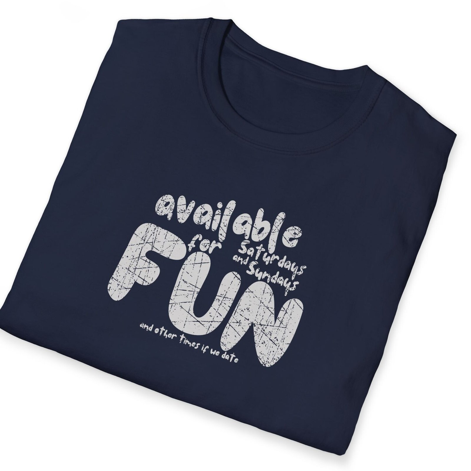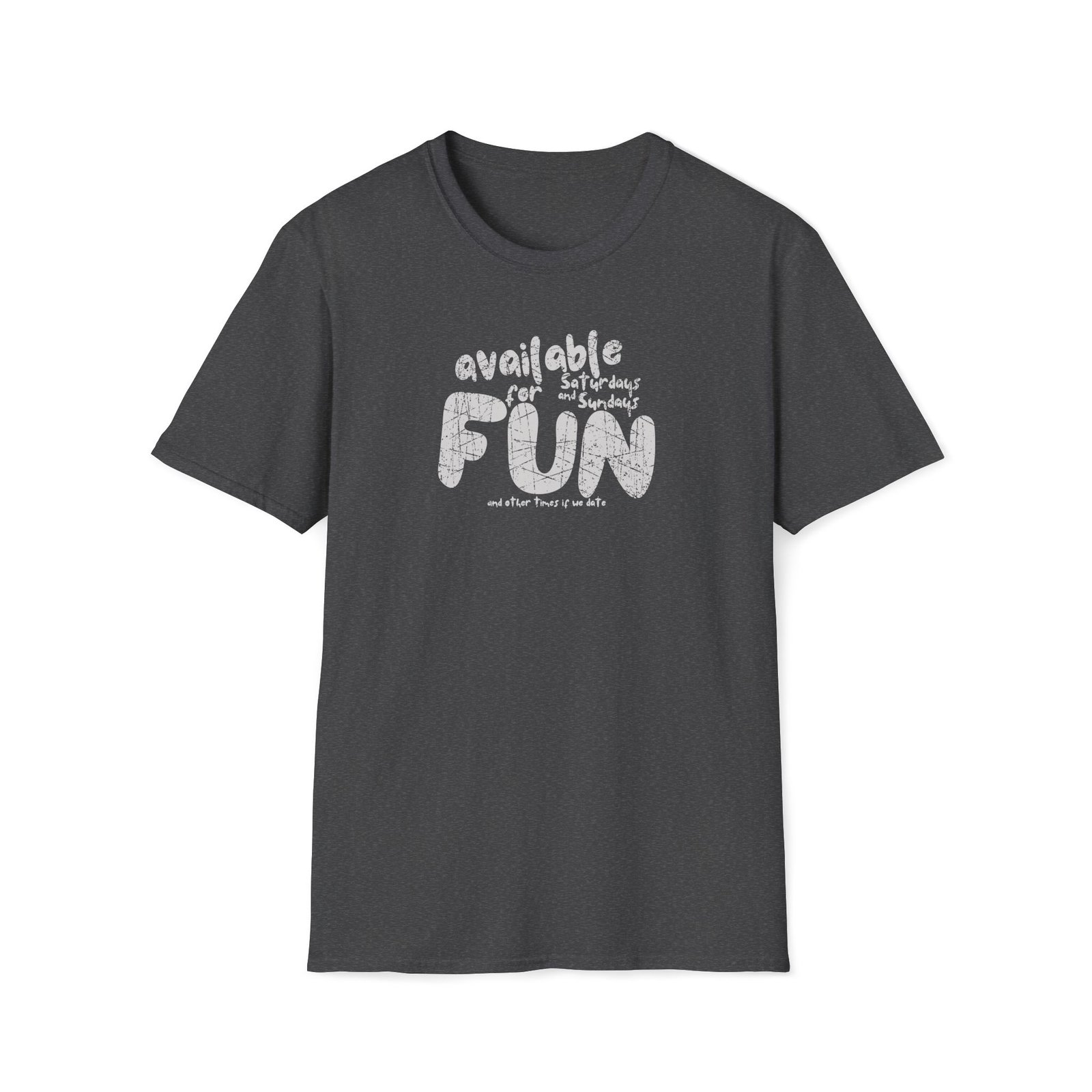 Keywords/Tags: available for fun shirt, funny dating tee, flirty weekend shirt, Gildan 64000 lightweight tee, premium conversation starter shirt, post covid dating shirt, humorous dating t-shirt, cheeky fun shirt, weekend availability shirt, icebreaker tee