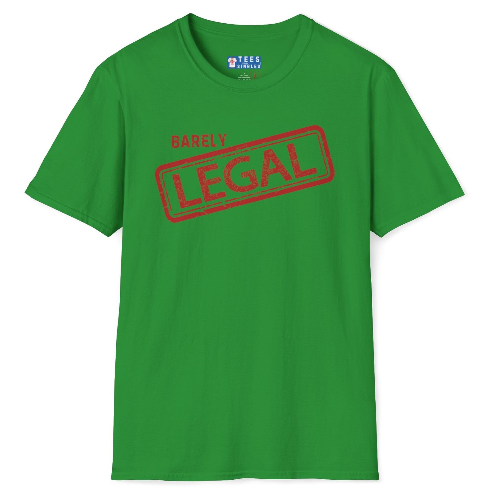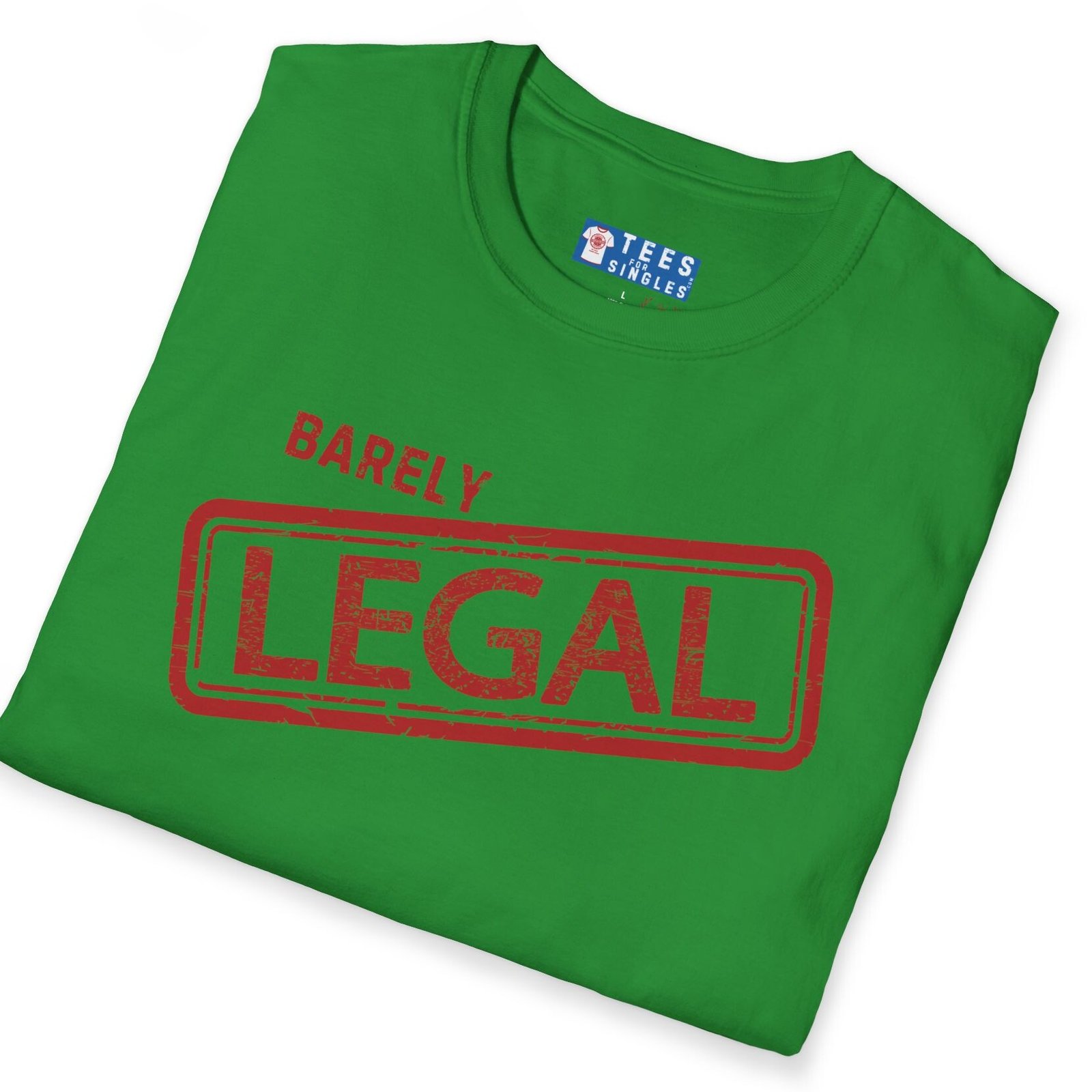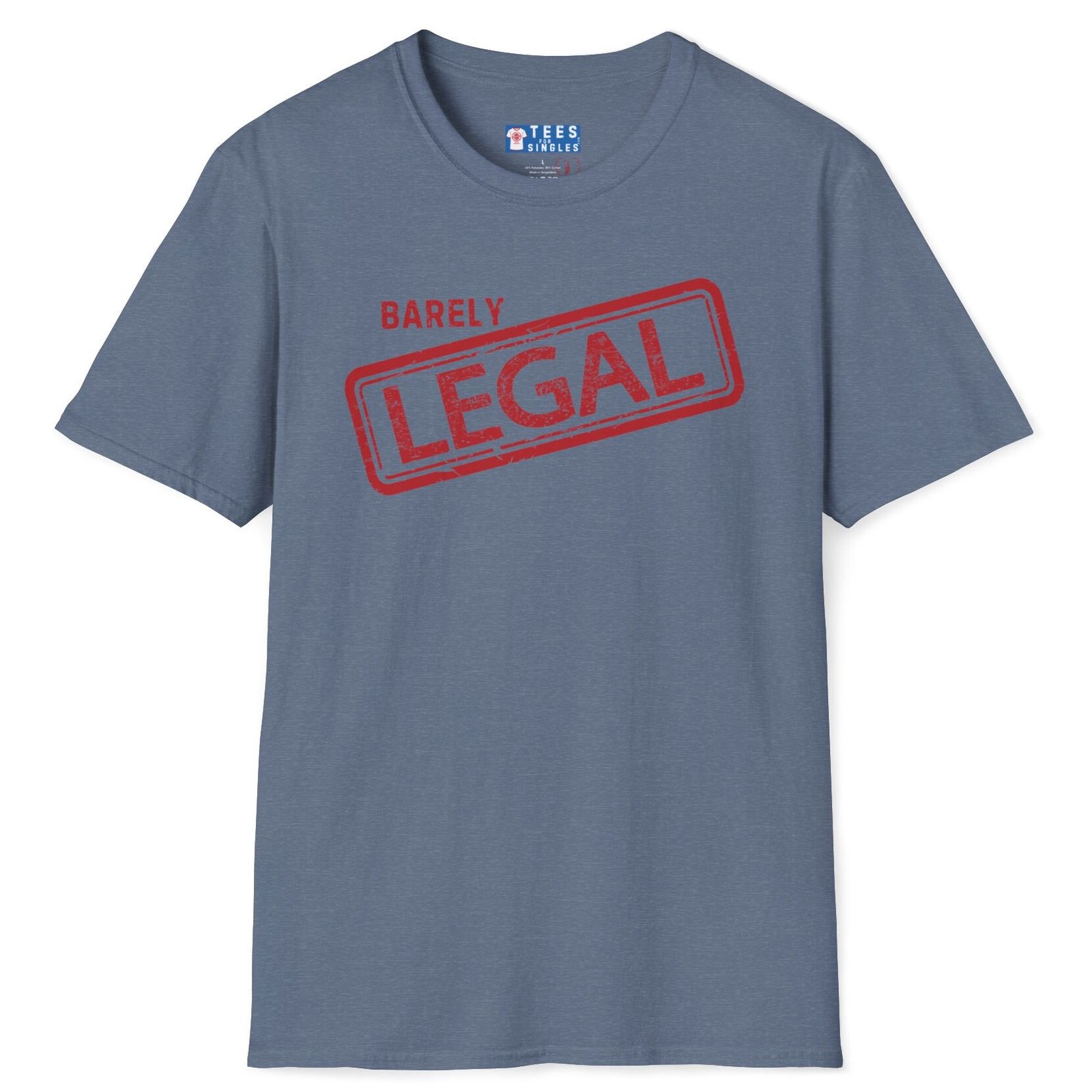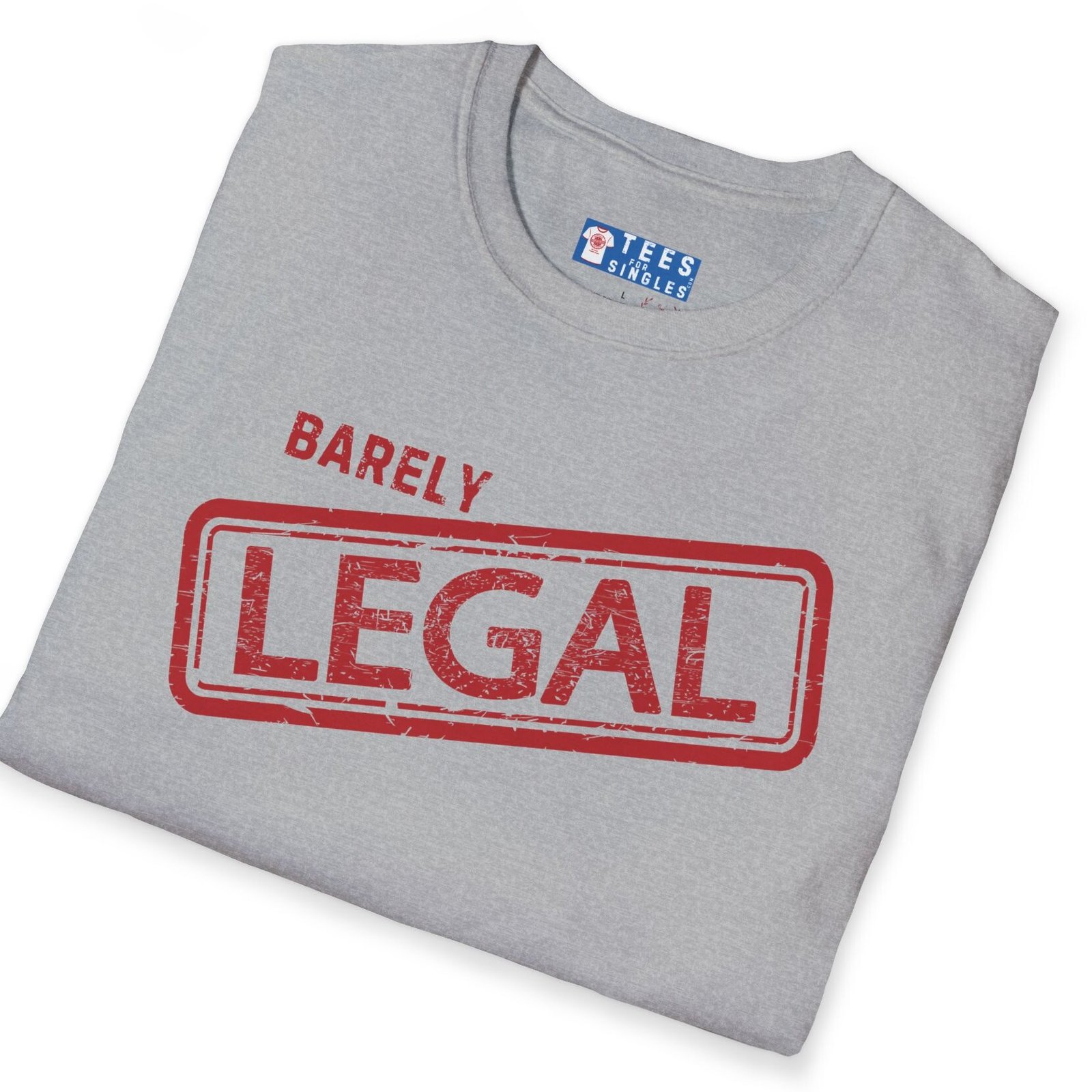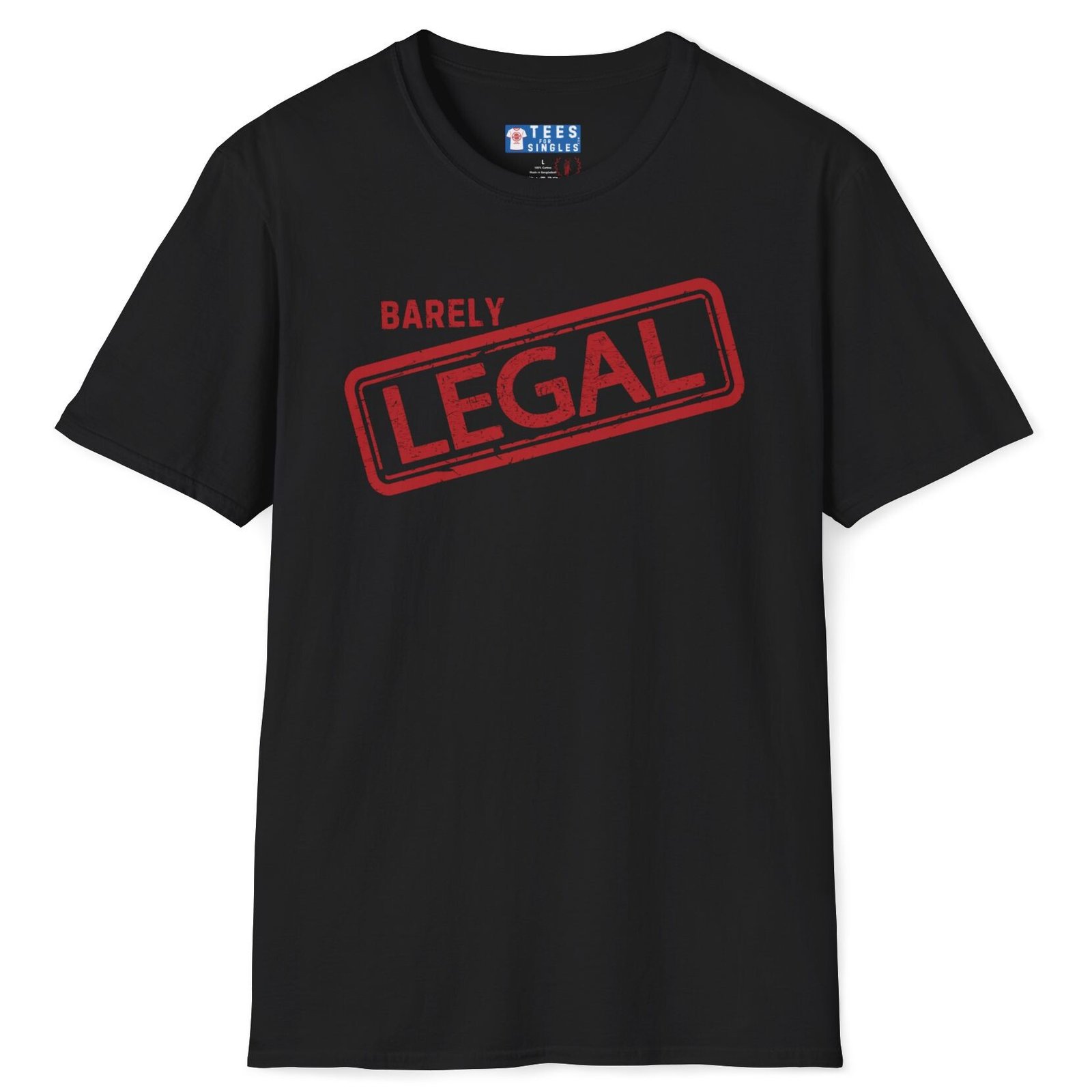 Keywords/Tags: Barely Legal shirt, provocative tee, edgy humor shirt, funny dating tee, conversation starter shirt, humor tee, Vox Nova Clothing, Premium Tee, Gildan 64000, lightweight t-shirt, dating humor, find love, spark conversations, ice breaker shirt, casual dating wear, statement tee, soft cotton shirt, comfortable t-shirt, unique graphic tee