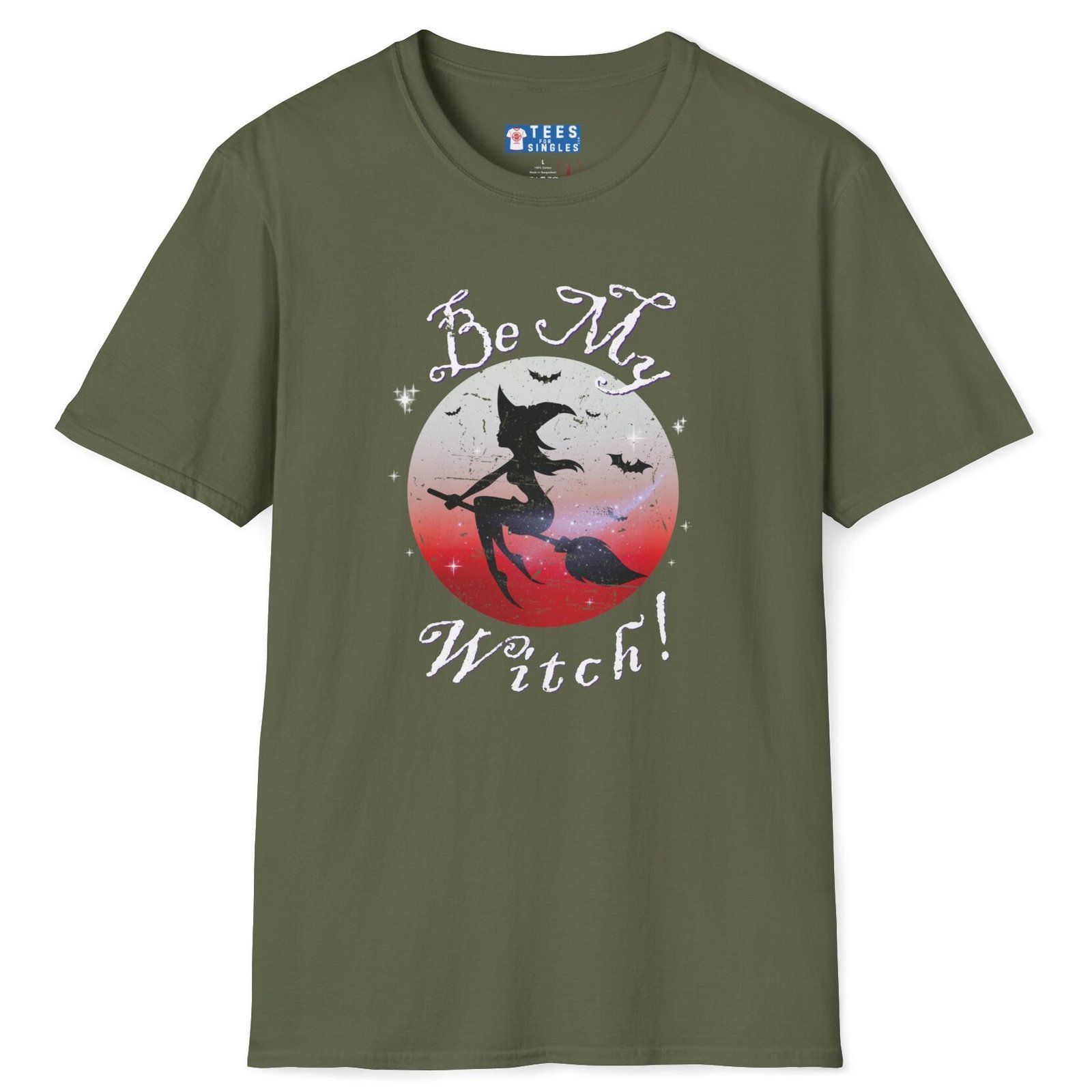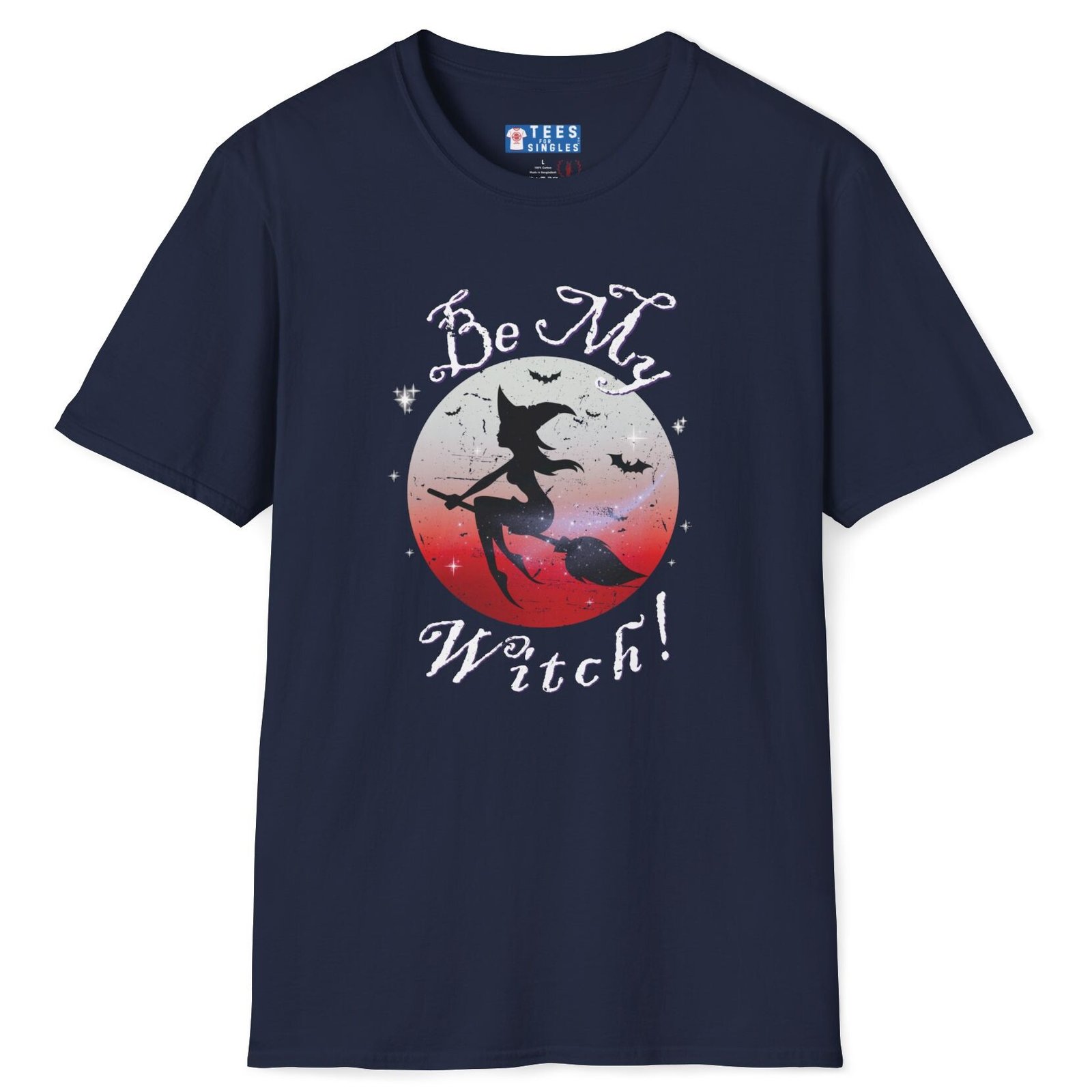 be my witch shirt, sexy witch Halloween tee, flirty full moon shirt, Gildan 64000 graphic tee, spooky pin-up shirt, retro witch tee, Halloween flirt shirt, witch on broom tee, cute witch costume alternative, lightweight sexy Halloween shirt, flirty spooky shirt, premium graphic Halloween tee