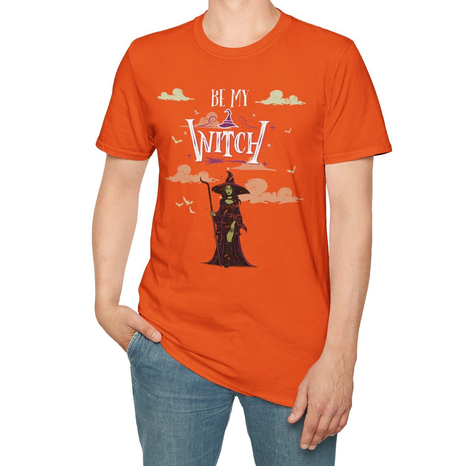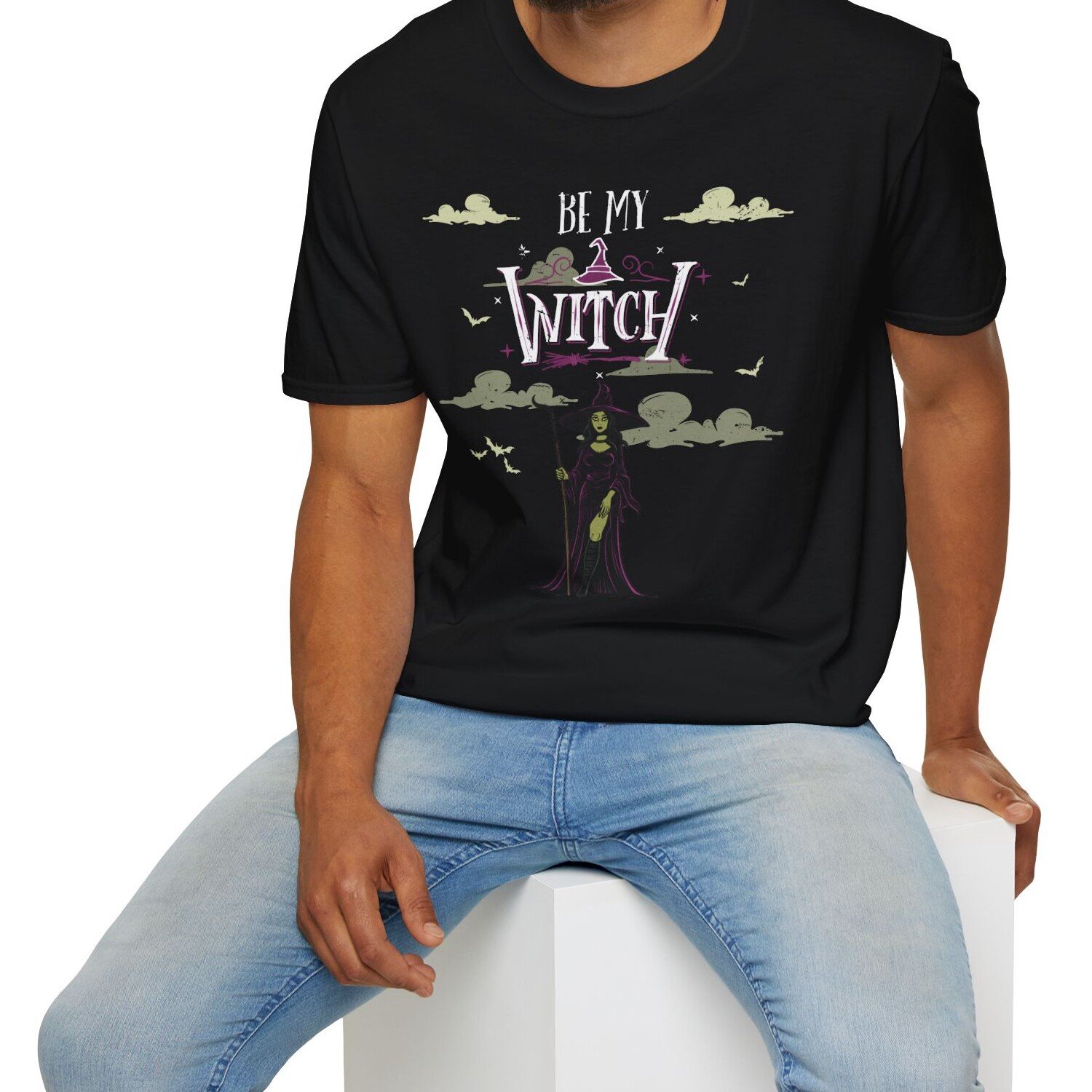 be my witch shirt, witchy romance tee, Halloween dating shirt, spooky season fashion, Gildan 64000 goth tee, sultry witch shirt, dark feminine aesthetic tee, alternative romance shirt, flirty witch shirt, moon magic tee, premium Halloween tee, lightweight goth girl tee, witchcore fashion