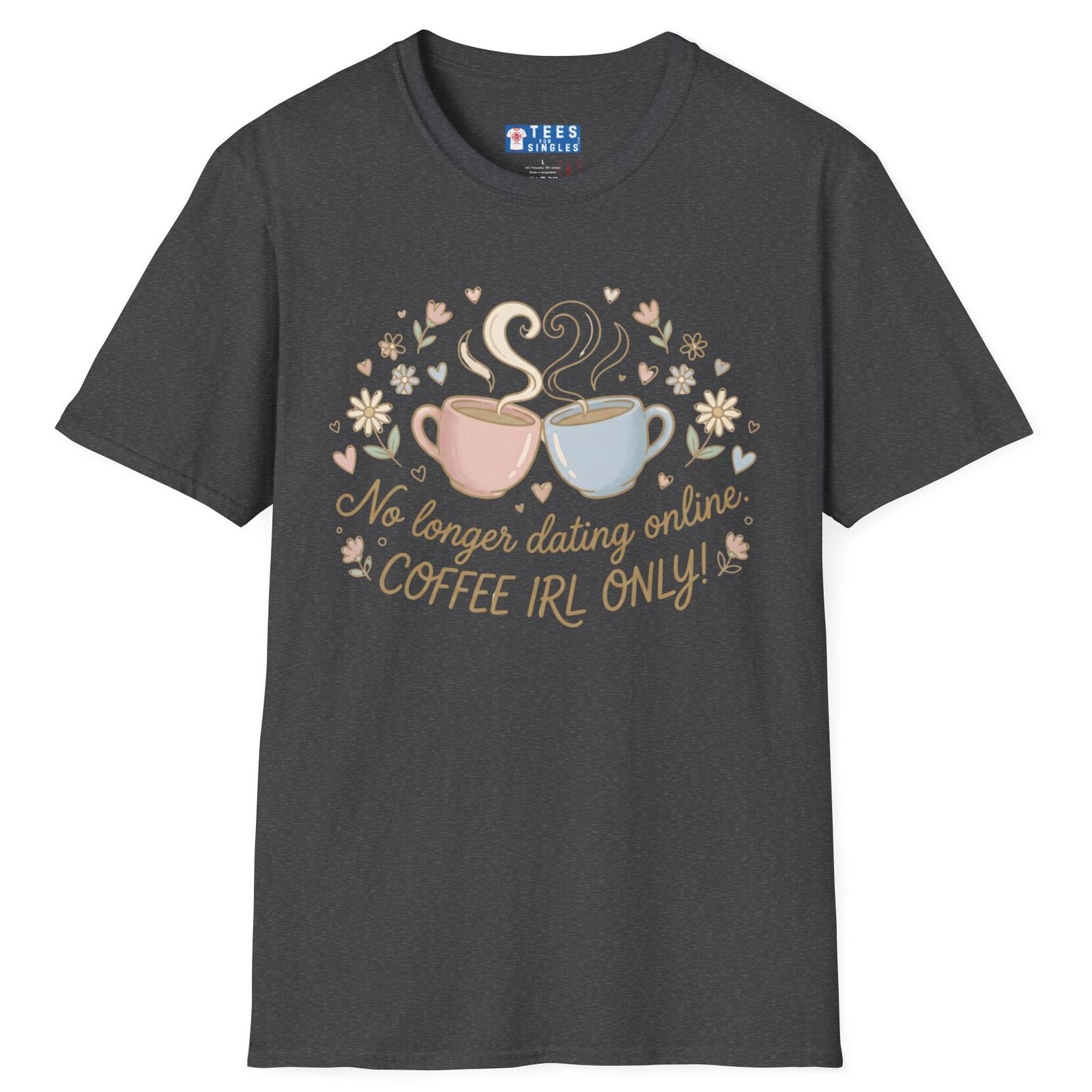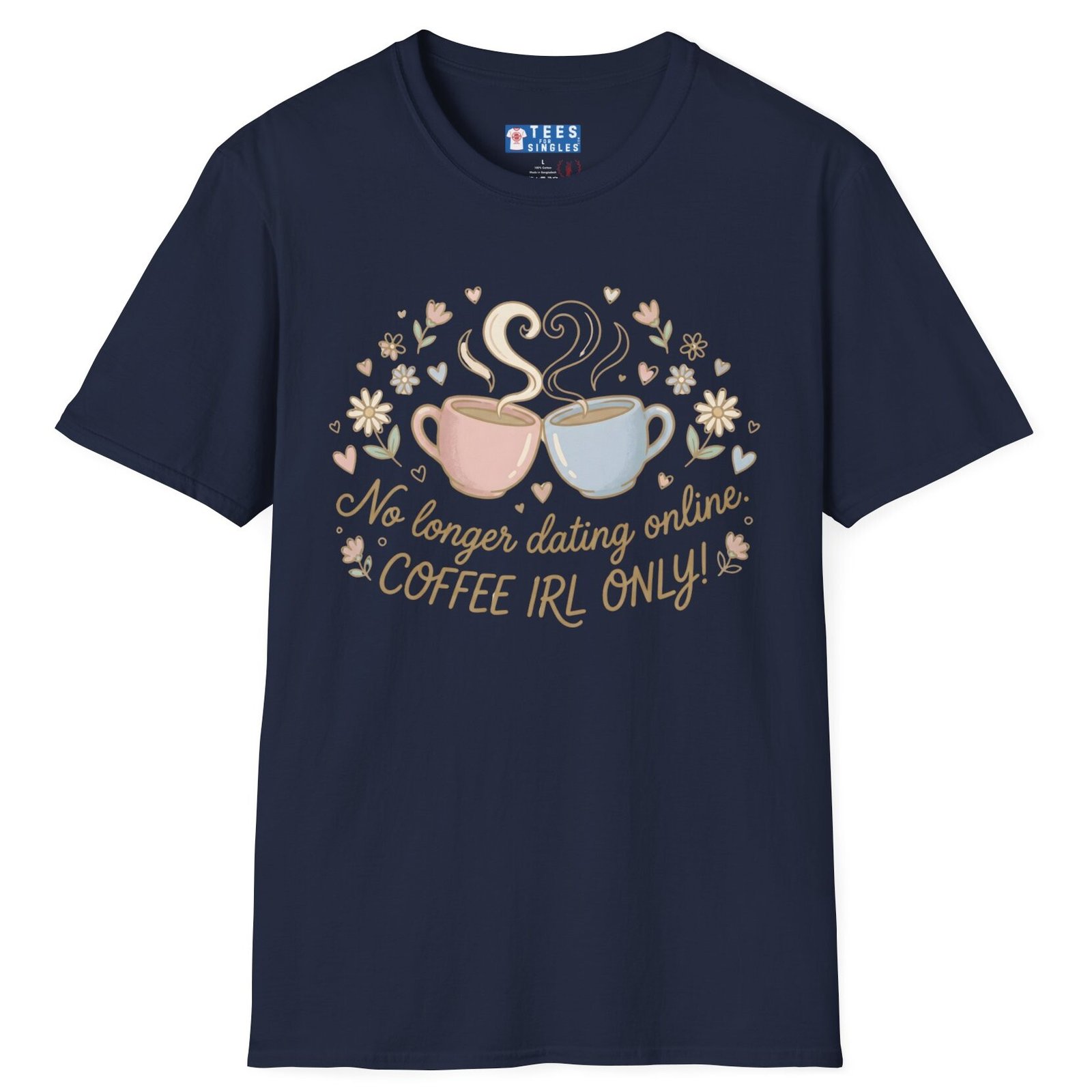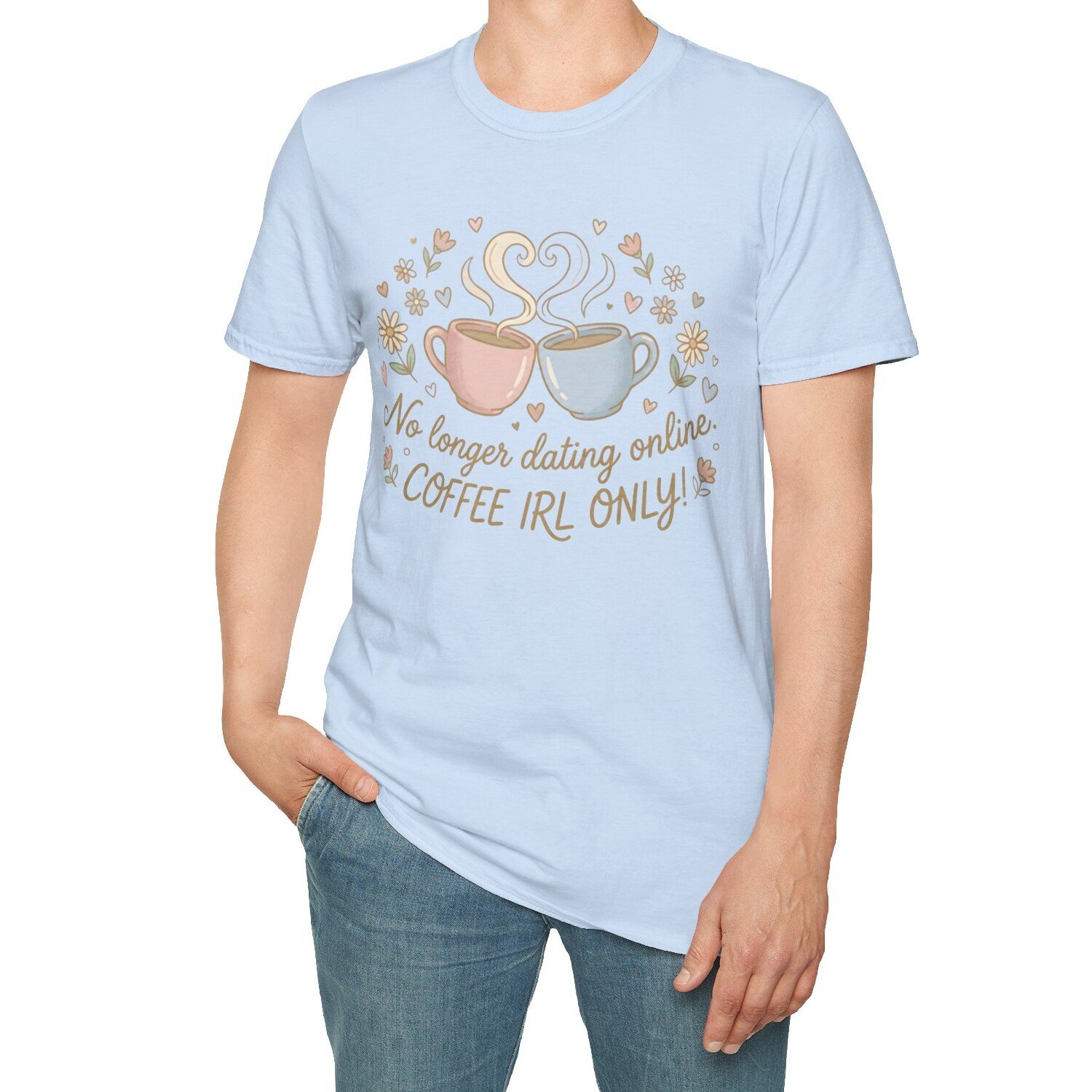 coffee dating shirt, coffee irl only tee, premium flirty t shirt, coffee lover graphic tee, dating conversation starter shirt, casual dating tee, cozy aesthetic shirt, playful mens t shirt