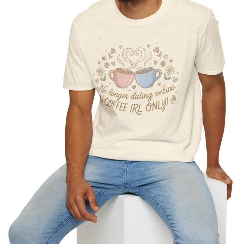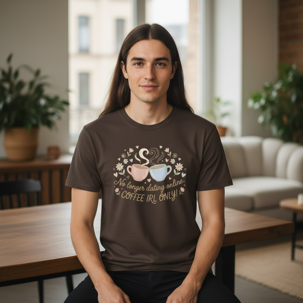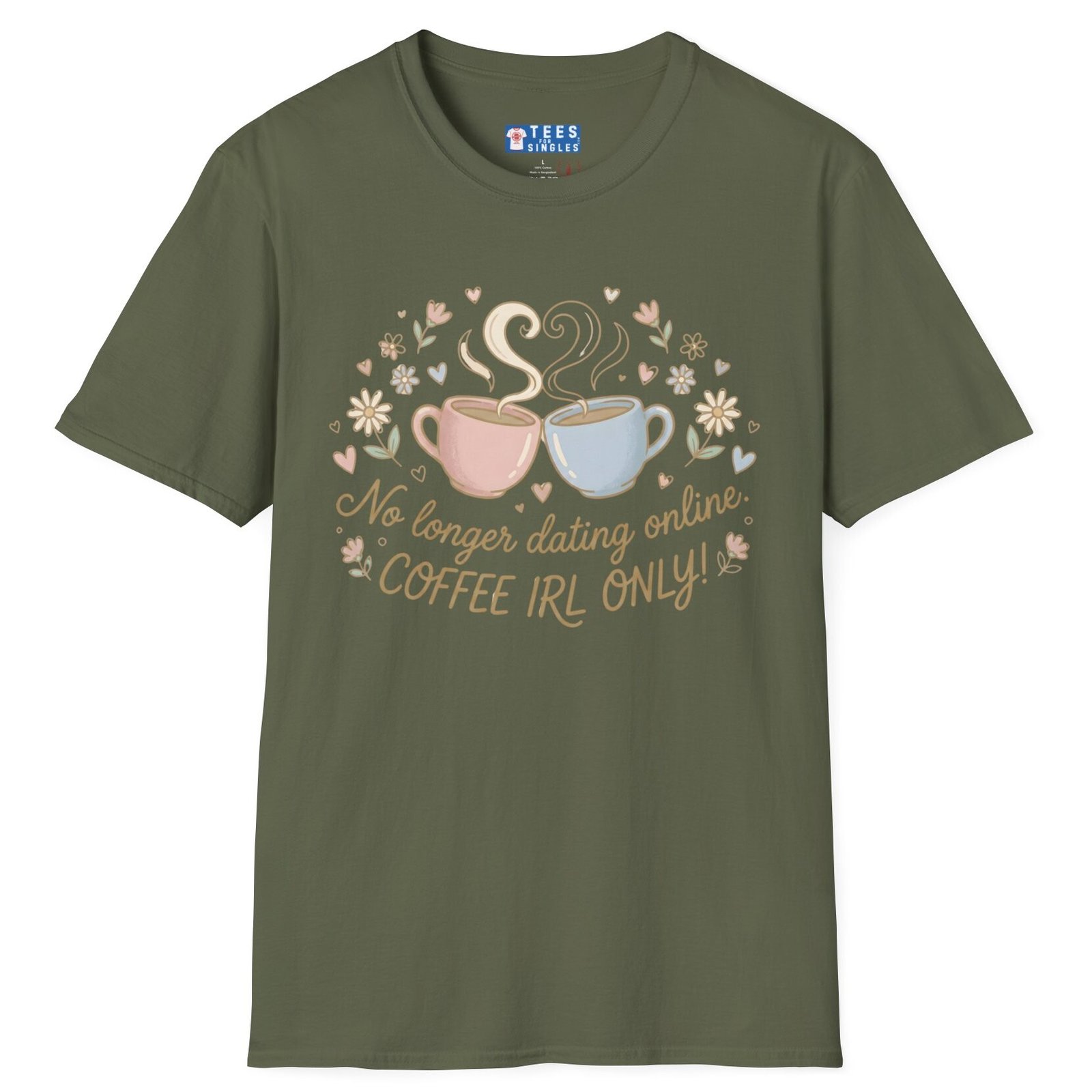 coffee dating shirt, coffee irl only tee, premium flirty t shirt, coffee lover graphic tee, dating conversation starter shirt, casual dating tee, cozy aesthetic shirt, playful mens t shirt