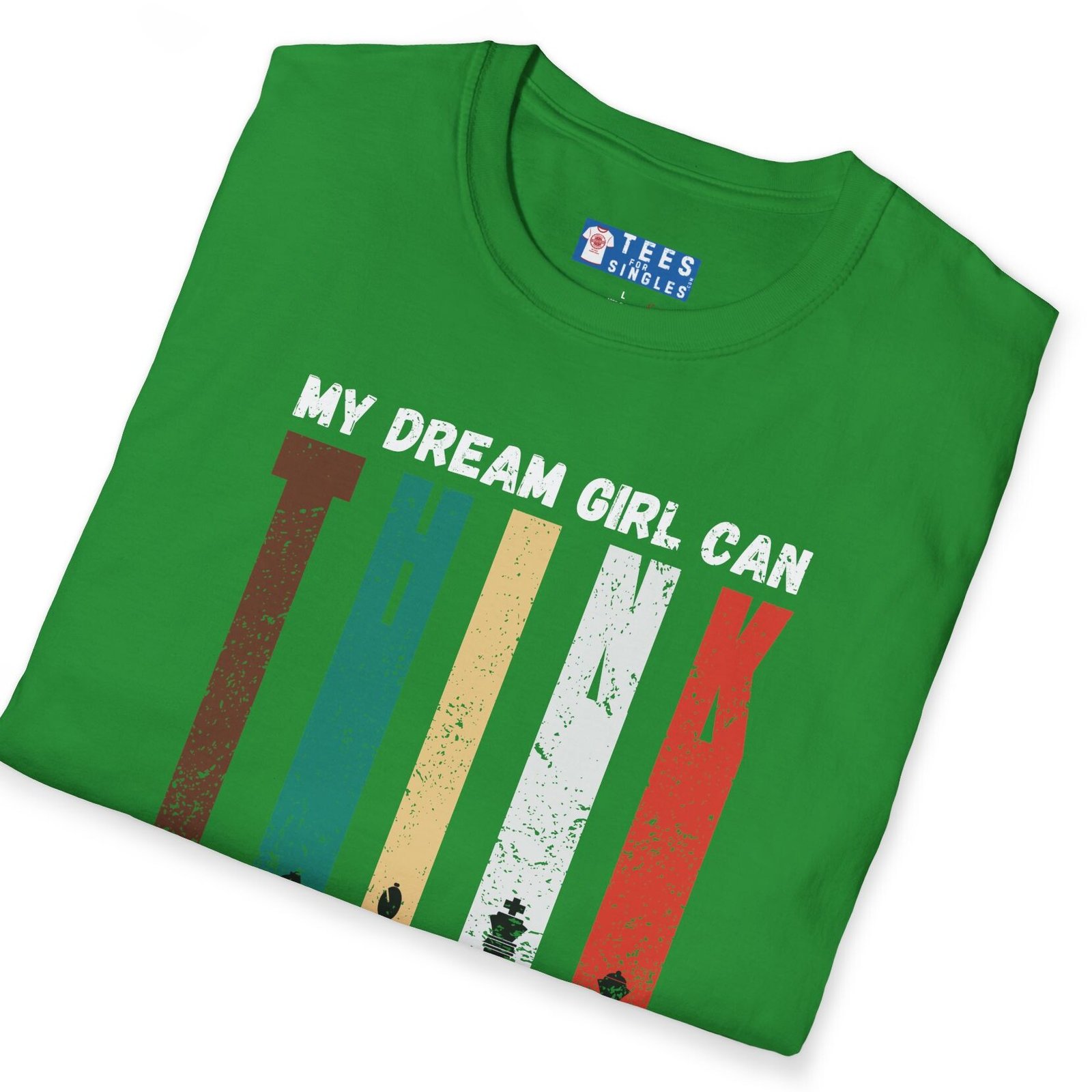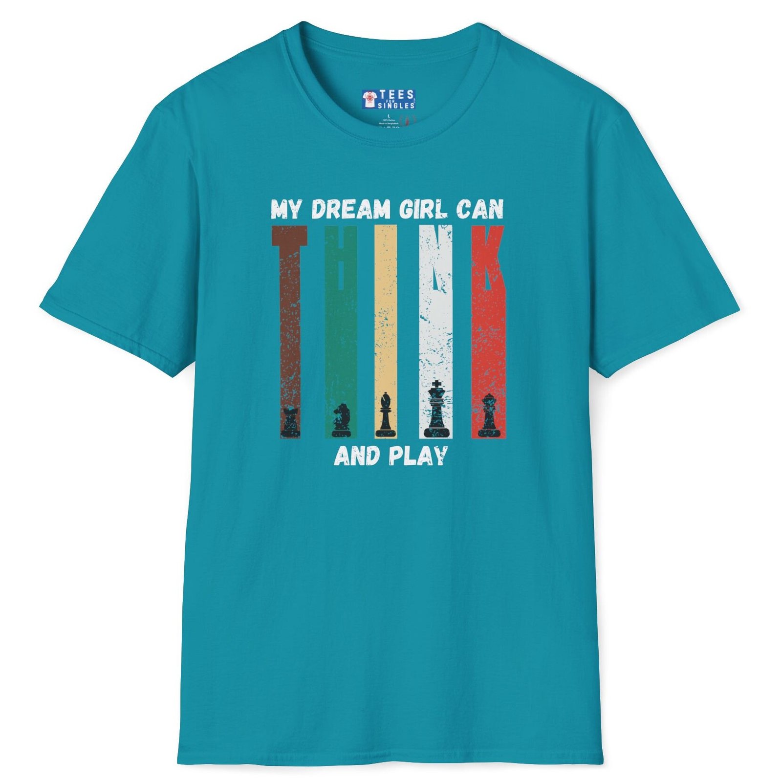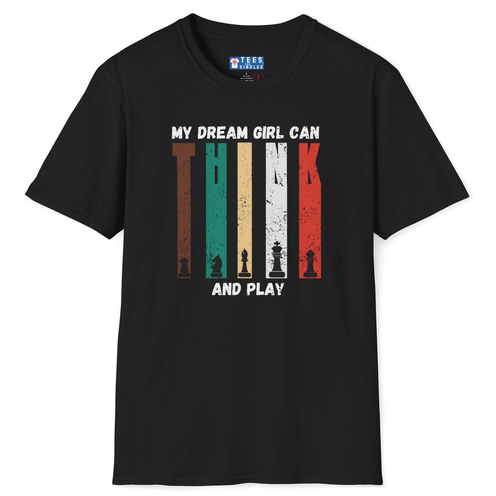Brains + playfulness = unbeatable combo. The My Dream Girl Can THINK and PLAY tee says it loud: you’re after someone who can strategize like a grandmaster and laugh like a gamer. Five distressed color columns feature chess pieces that spell T-H-I-N-K; grunge fade keeps it street-ready.