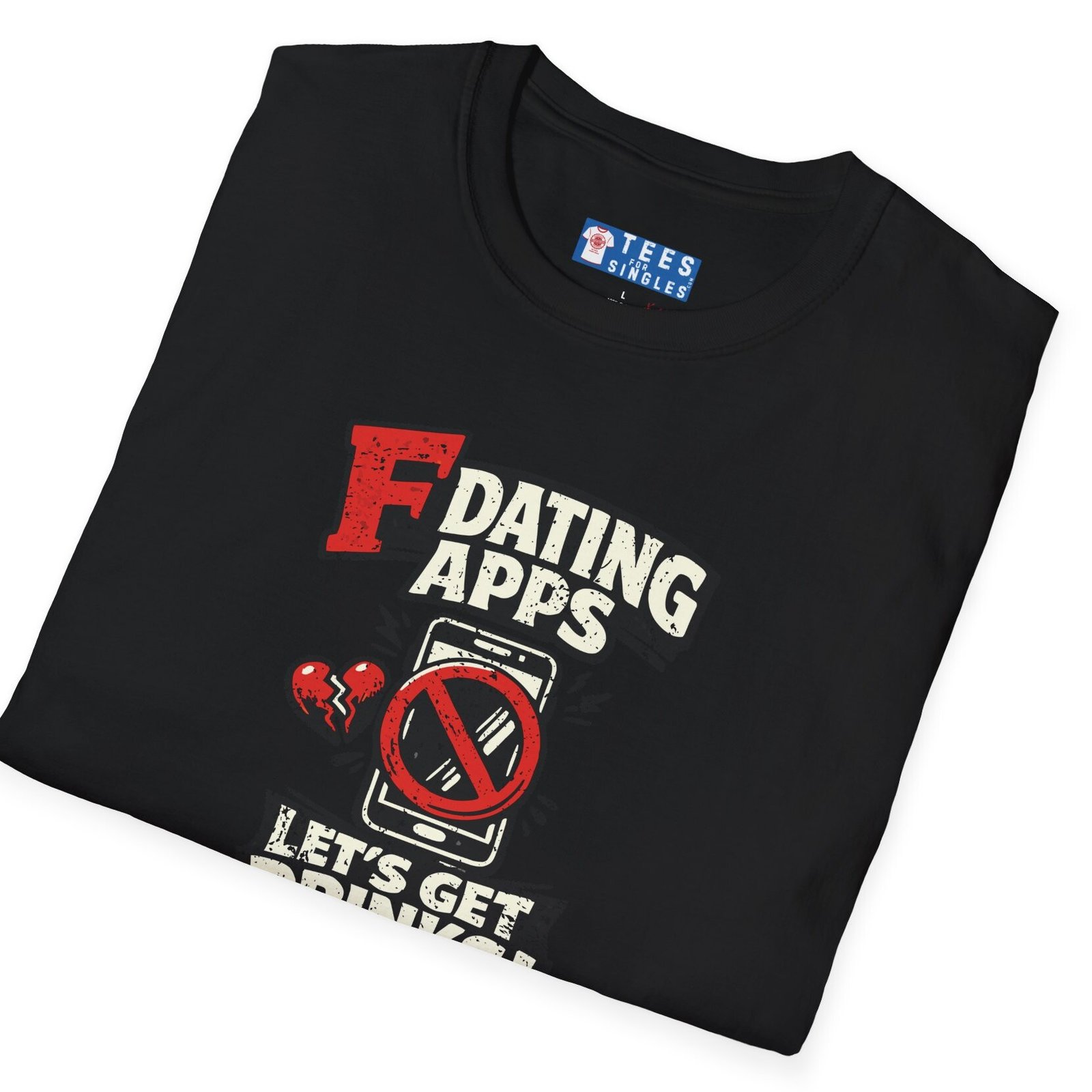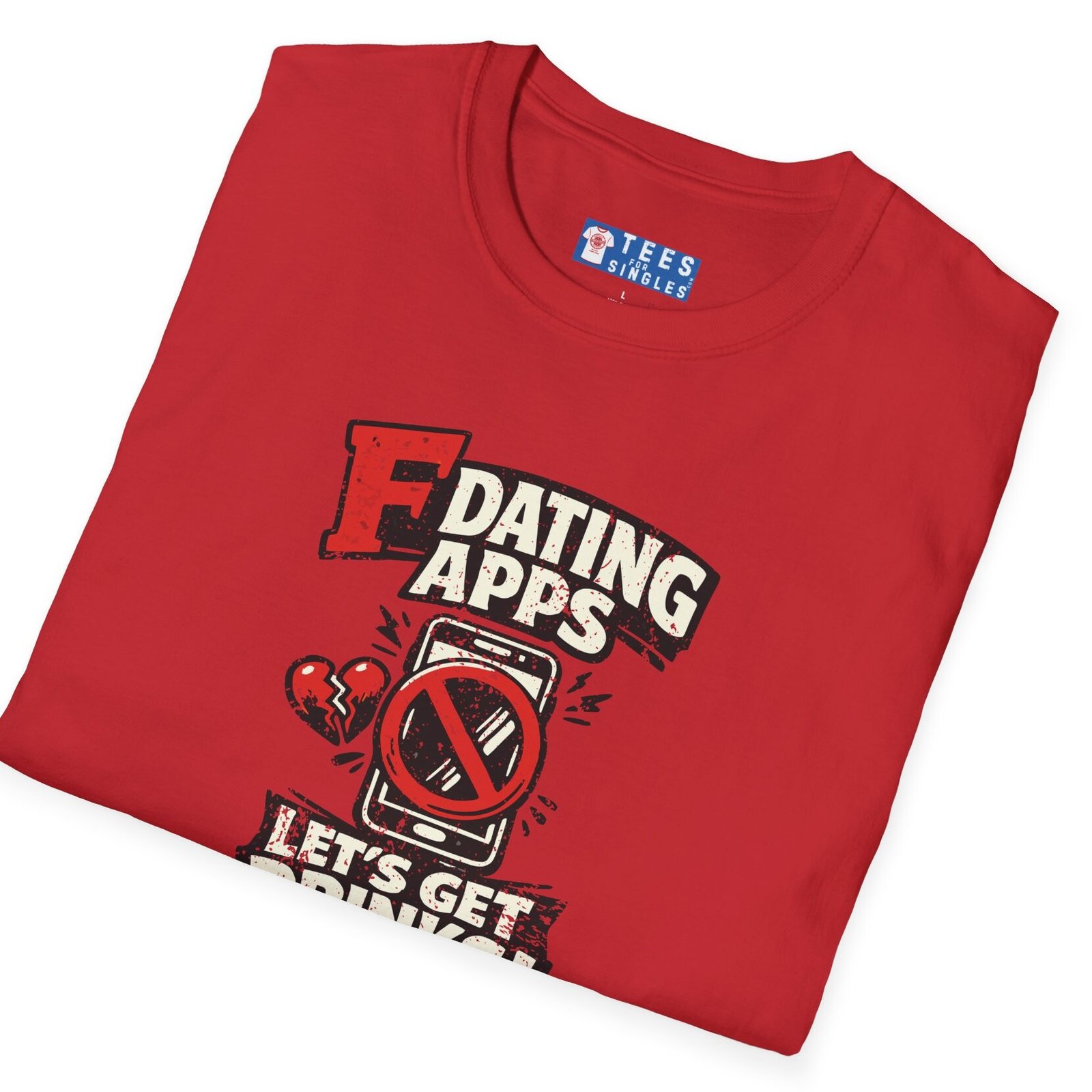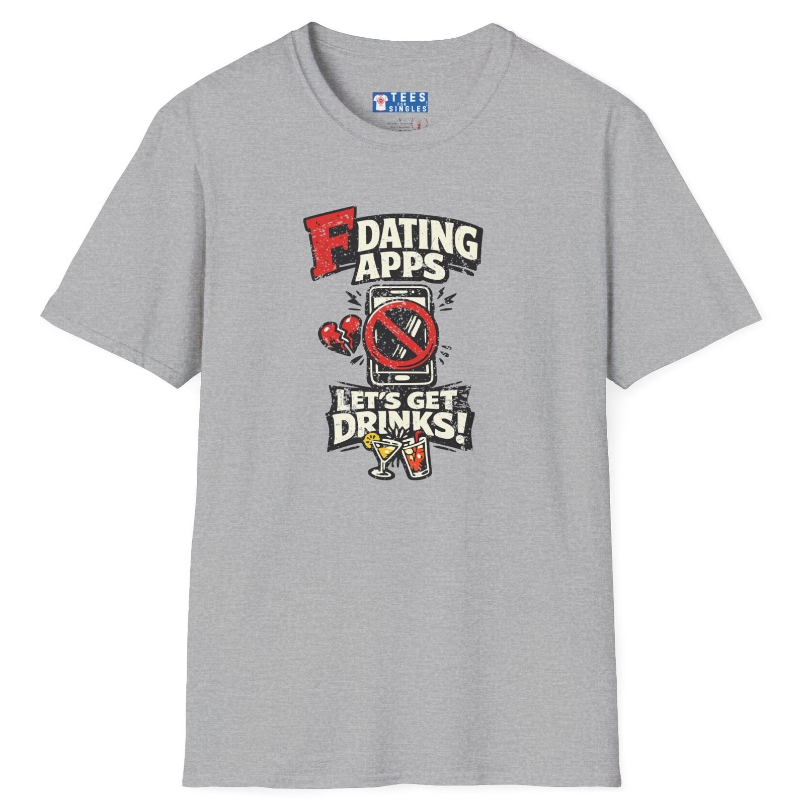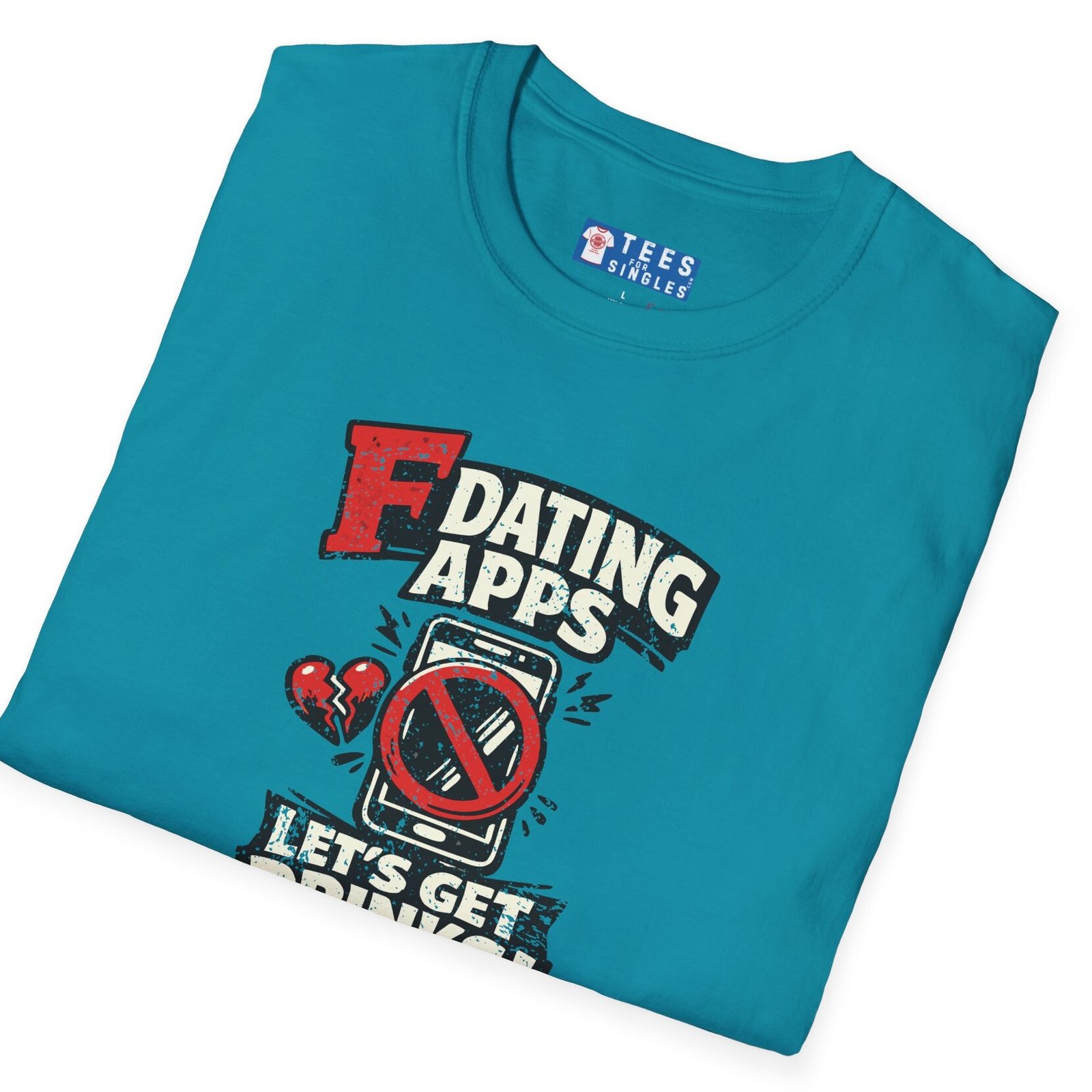 Big bold text calls out dating apps, a crossed out phone makes the point clear, and the punchline lands hard with Let’s Get Drinks. It is direct, funny, and refreshingly honest without trying too hard.