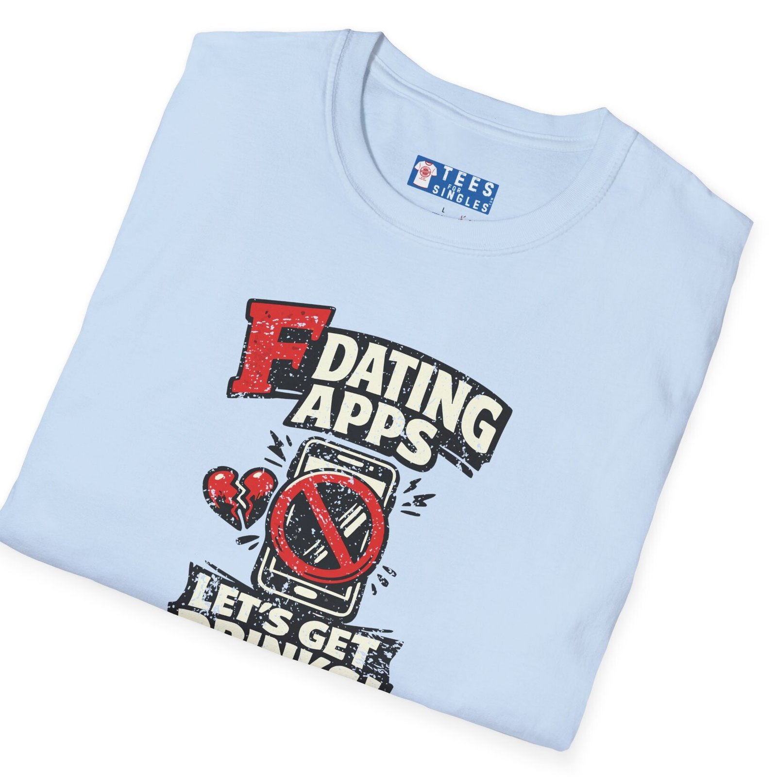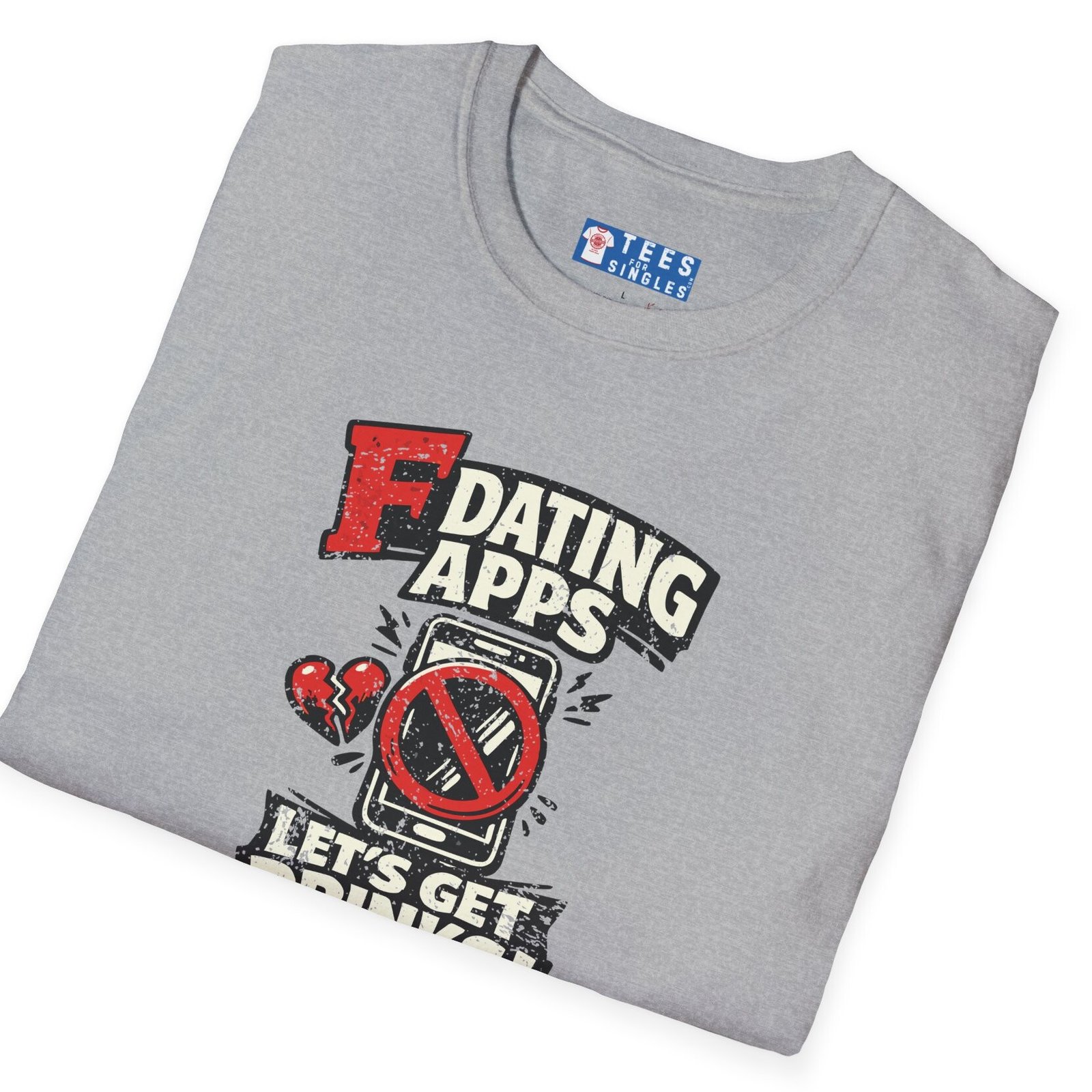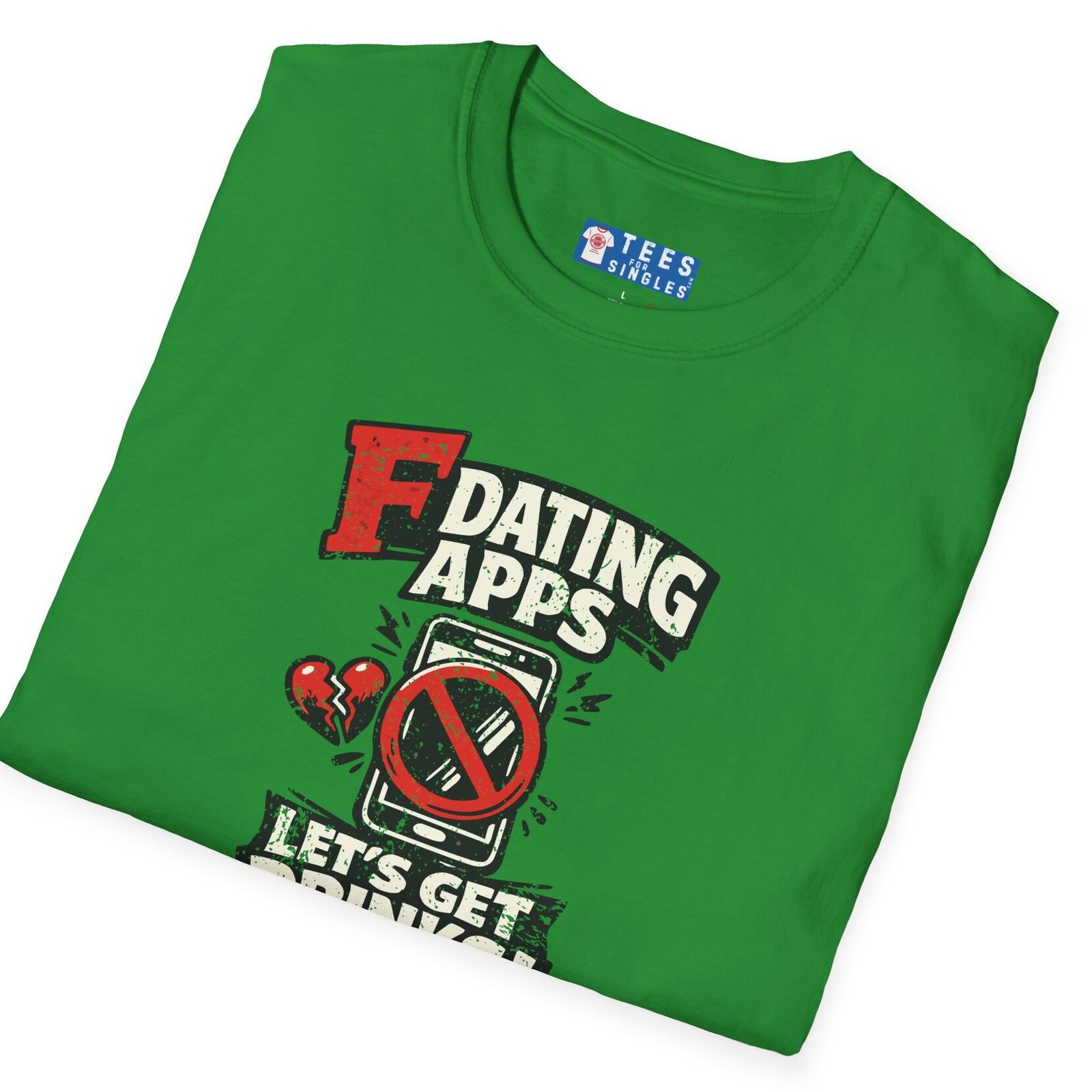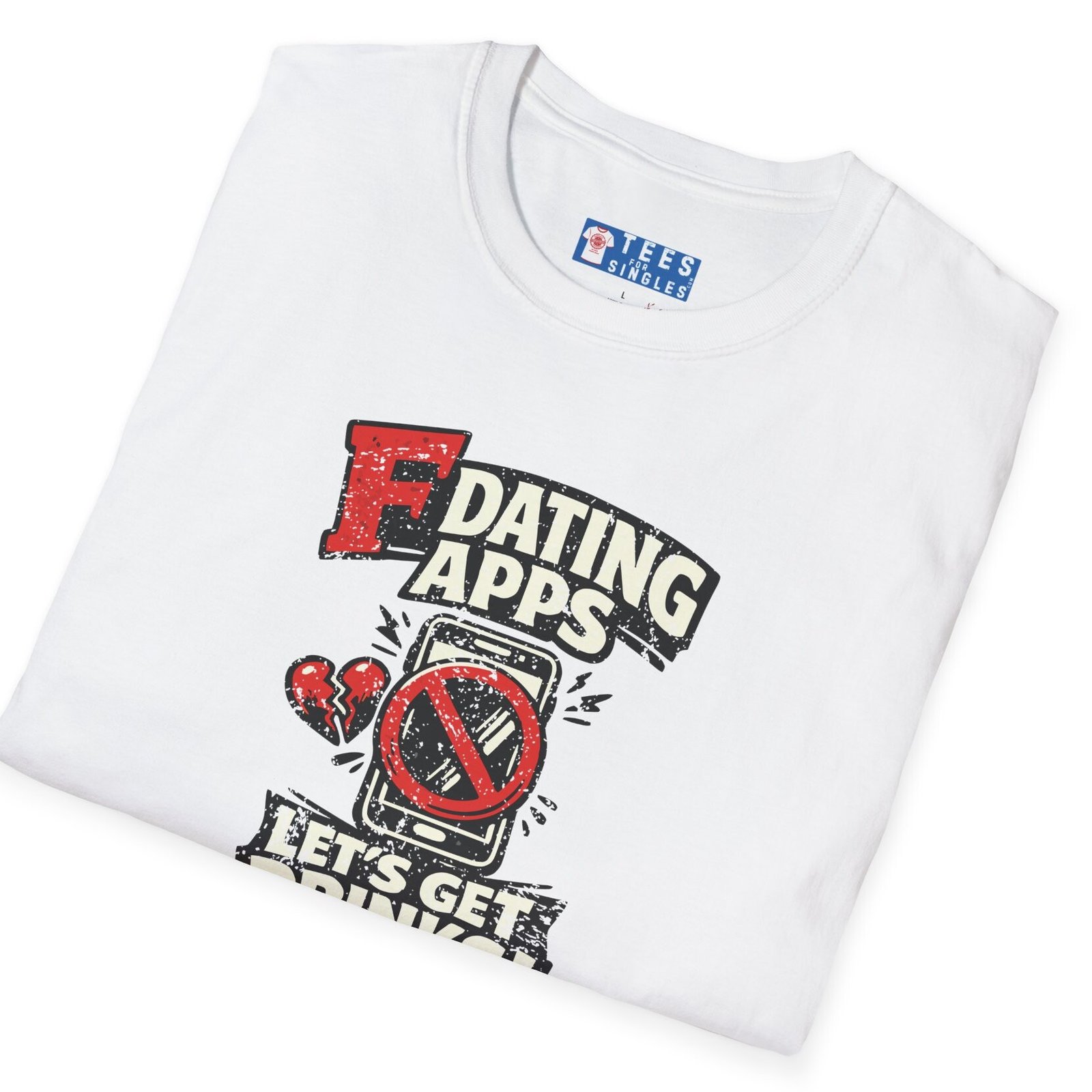 Big bold text calls out dating apps, a crossed out phone makes the point clear, and the punchline lands hard with Let’s Get Drinks. It is direct, funny, and refreshingly honest without trying too hard.