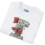 Printed on a smooth, ring-spun cotton tee, the graphic reads like a cheeky manifesto: skip swiping, meet in person — bright, slightly gritty artwork with vintage comic energy that pops from the chest. Wear it to casual bars, house parties, or lazy weekend meetups; it pairs effortlessly with jeans or layered under a jacket. The fabric feels breathable and soft against the skin, while durable prints and reinforced shoulder tape mean this shirt keeps its shape after repeat wear. It’s for people who prefer real conversations, shared laughs, and the confident kind of charm that a bold tee can start.