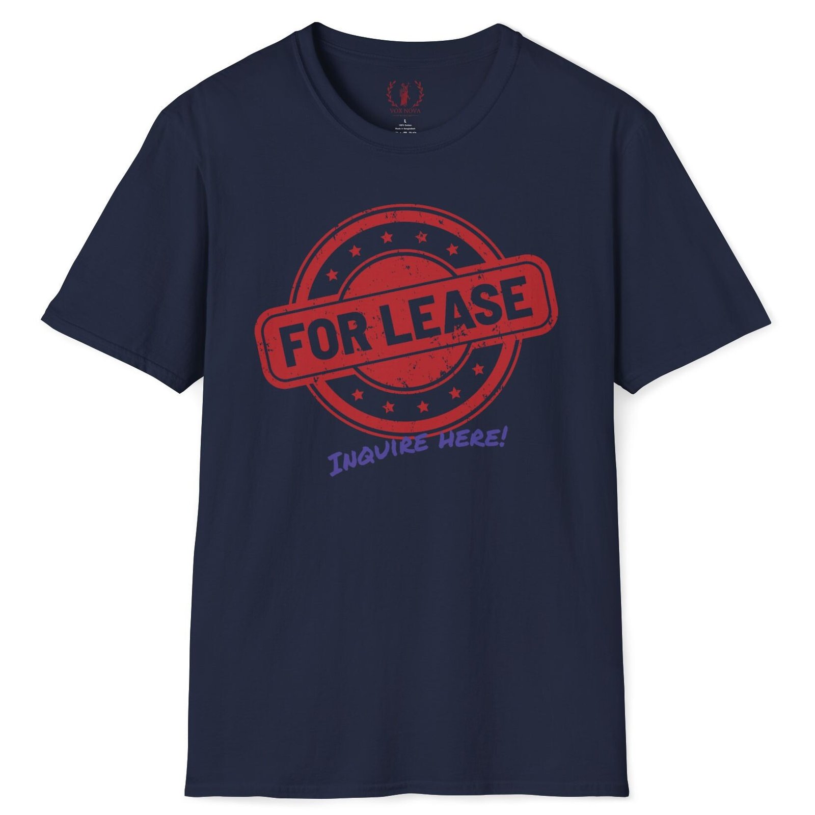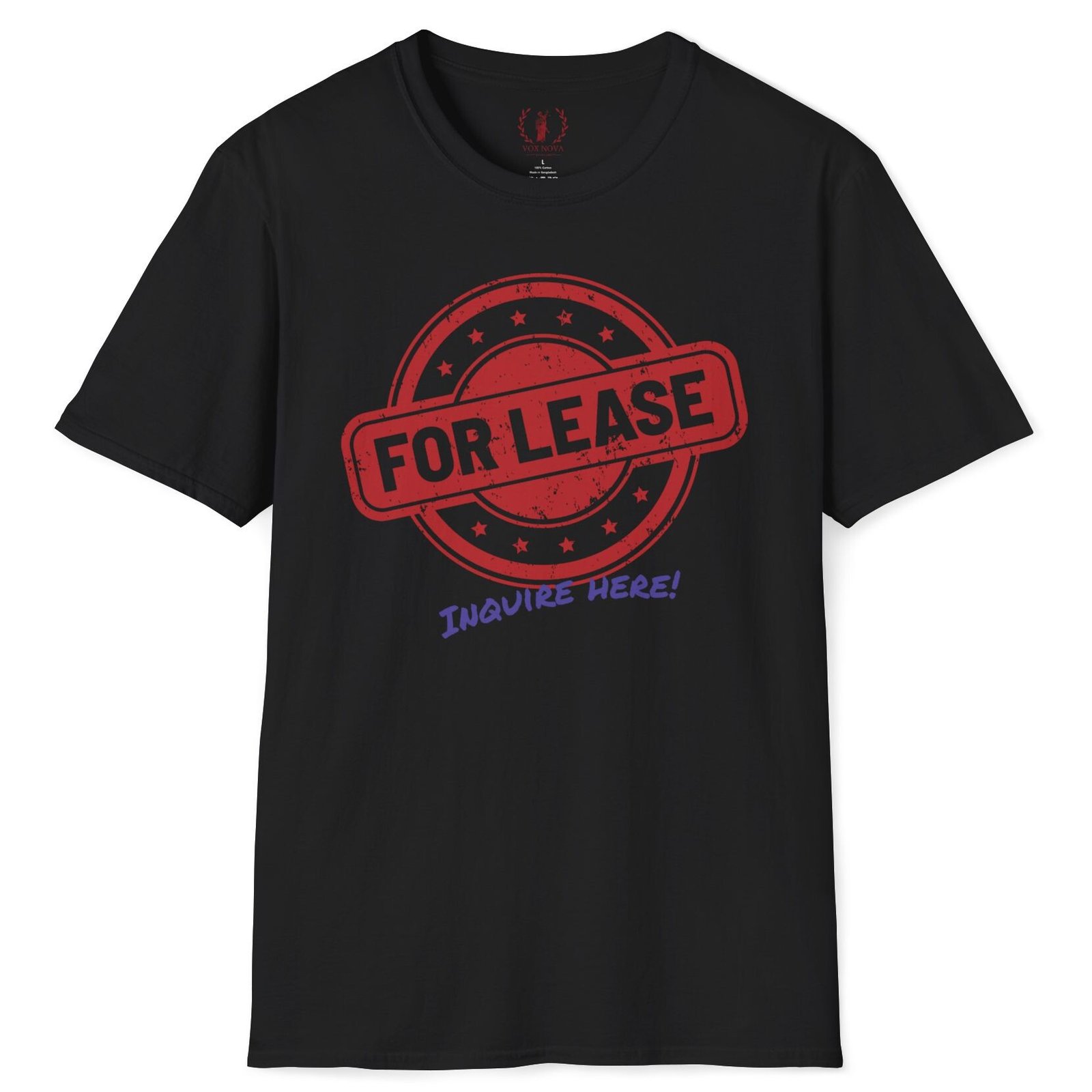 Keywords/Tags: For Lease shirt, Inquire Here tee, single and ready to mingle, funny dating shirt, conversation starter shirt, humor tee, Vox Nova Clothing, Premium Tee, Gildan 64000, lightweight t-shirt, dating humor, find love, spark conversations, ice breaker shirt, casual dating wear, statement tee, soft cotton shirt, comfortable t-shirt, unique graphic tee
