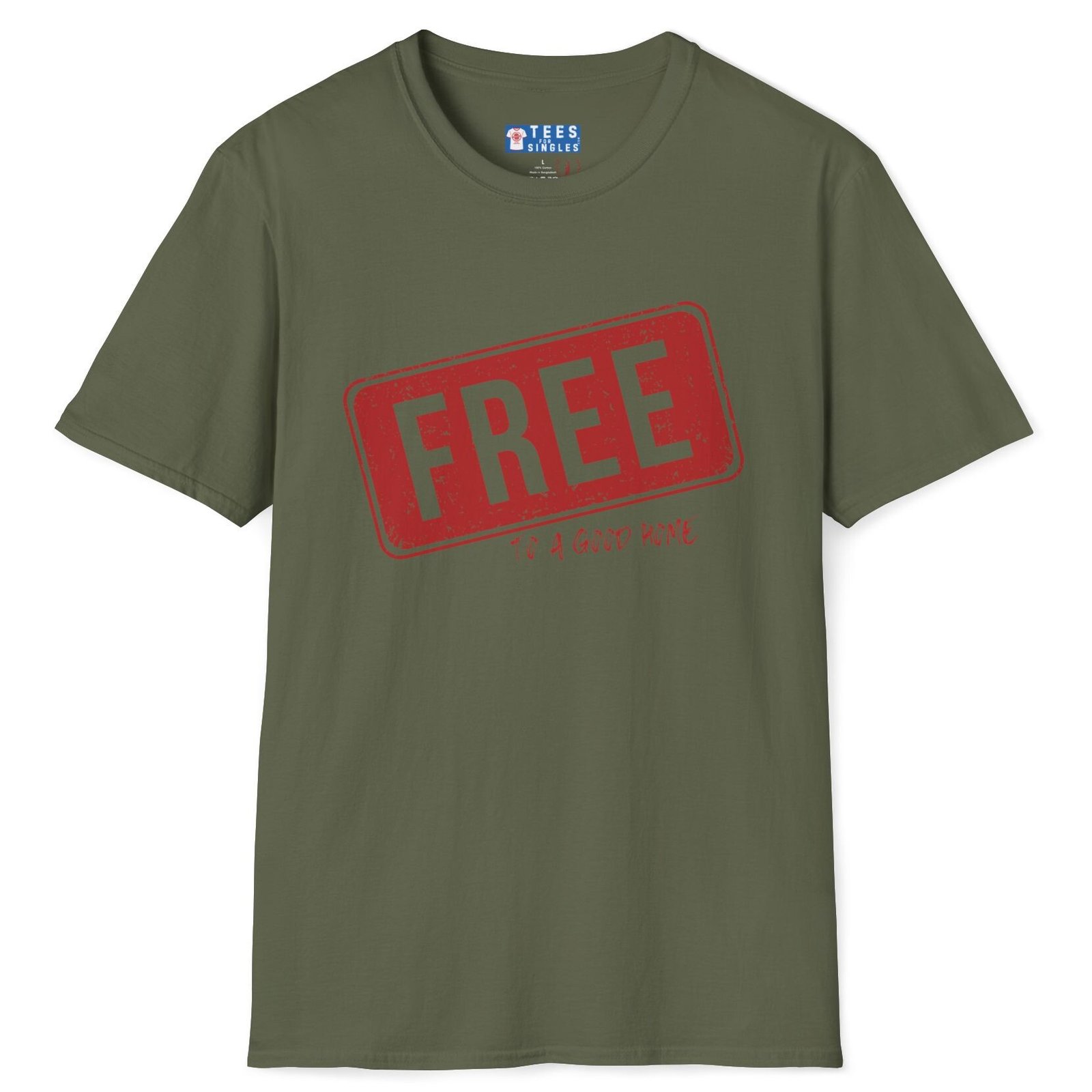 Keywords/Tags: FREE To A Good Home shirt, funny dating tee, good catch humor, forever home shirt, conversation starter shirt, humor tee, Tees For Singles, Premium Tee, Gildan 64000, lightweight t-shirt, dating humor, find love, spark conversations, ice breaker shirt, casual dating wear, statement tee, soft cotton shirt, comfortable t-shirt, unique graphic tee