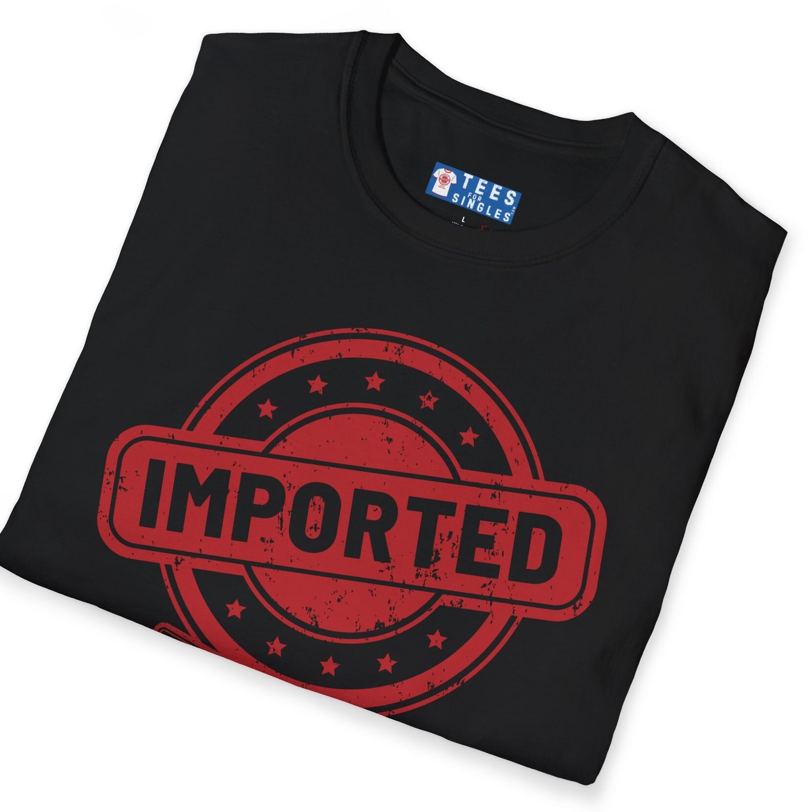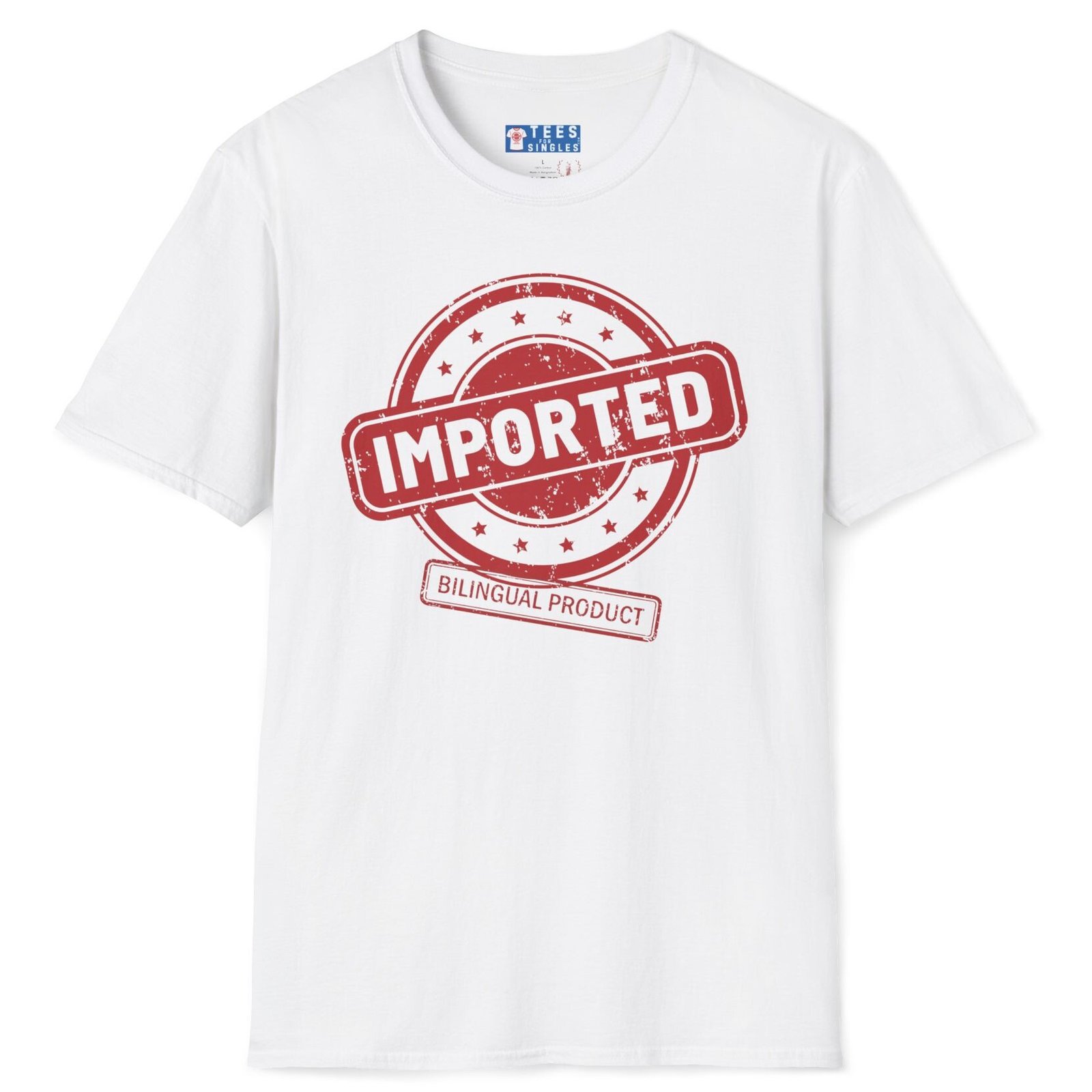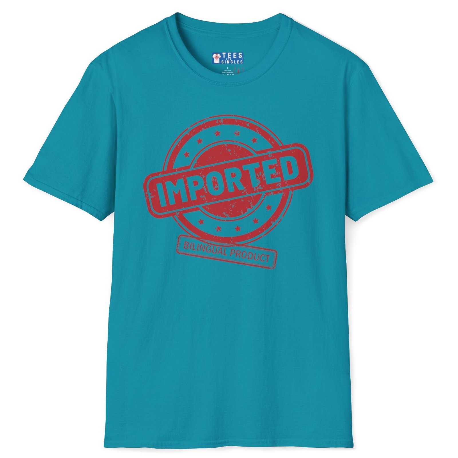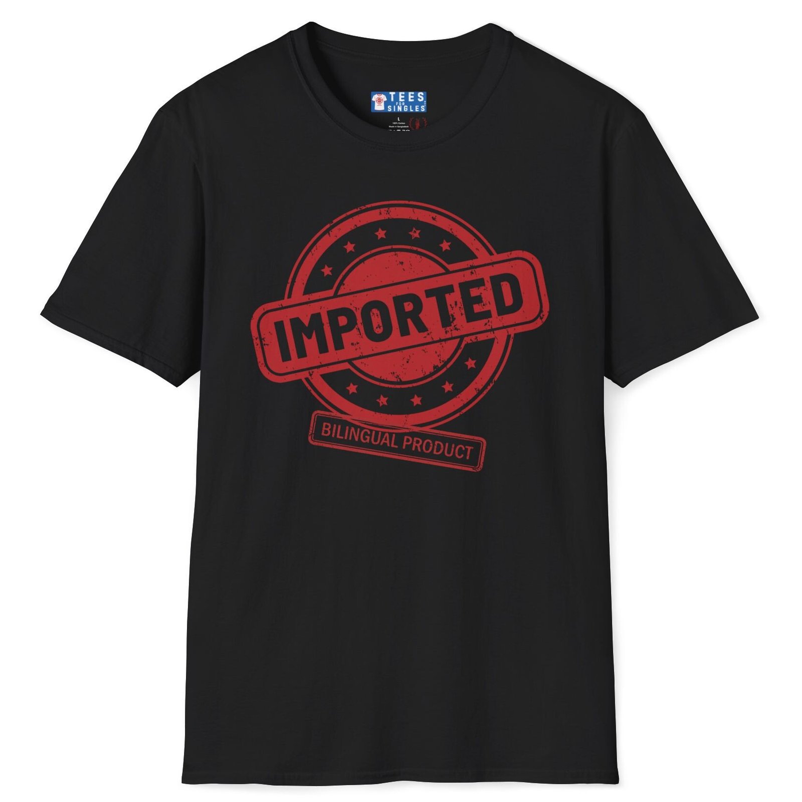Keywords/Tags: Imported shirt, Bilingual Product tee, funny dating shirt, international humor, conversation starter shirt, humor tee, Tees For Singles, Premium Tee, Gildan 64000, lightweight t-shirt, dating humor, find love, spark conversations, ice breaker shirt, casual dating wear, statement tee, soft cotton shirt, comfortable t-shirt, unique graphic tee