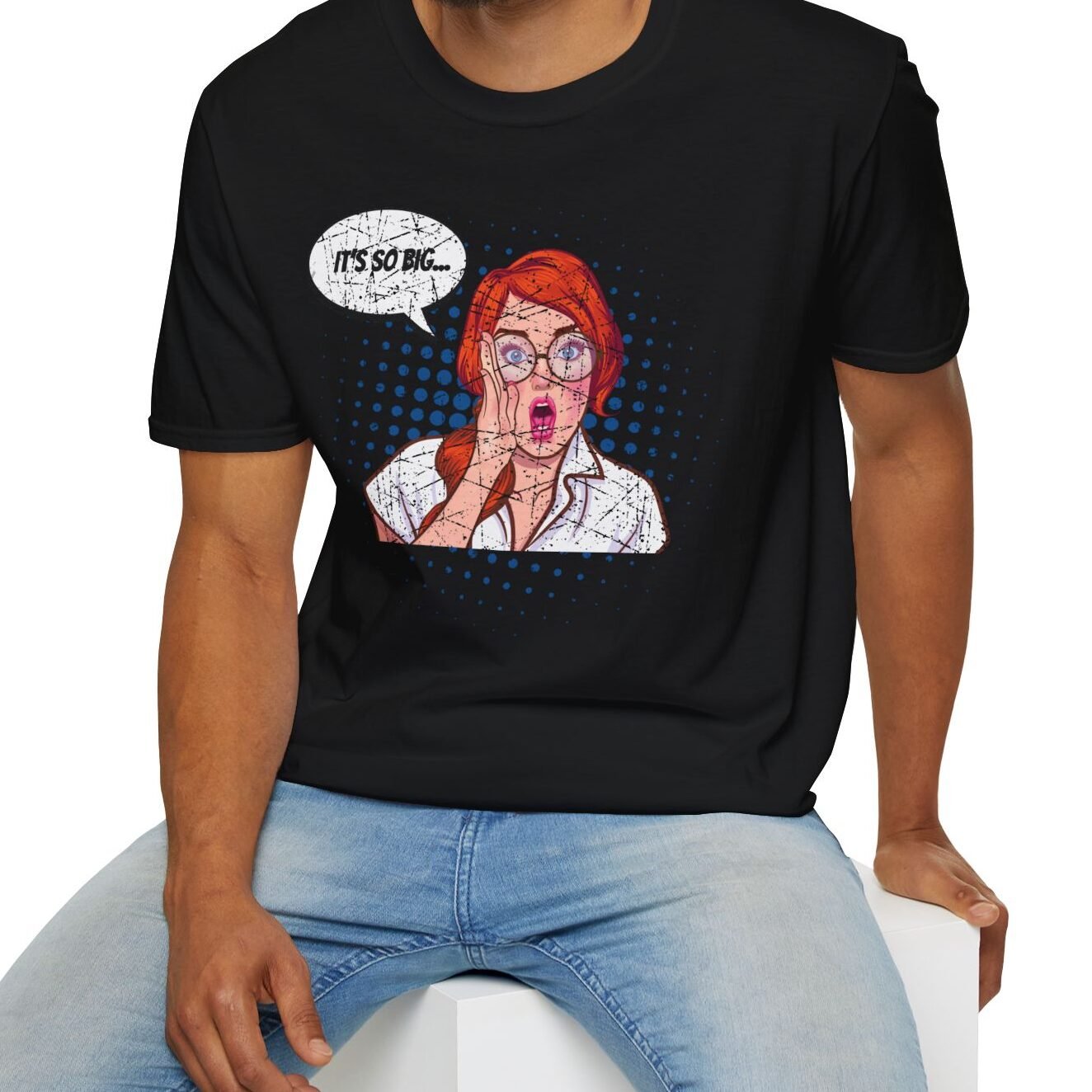Keywords/Tags: flirty shirt, it’s so big tee, cheeky graphic tee, conversation starter shirt, funny singles shirt, retro pop art shirt, double meaning shirt, bar shirt for men, dating icebreaker tee, premium cotton flirt shirt