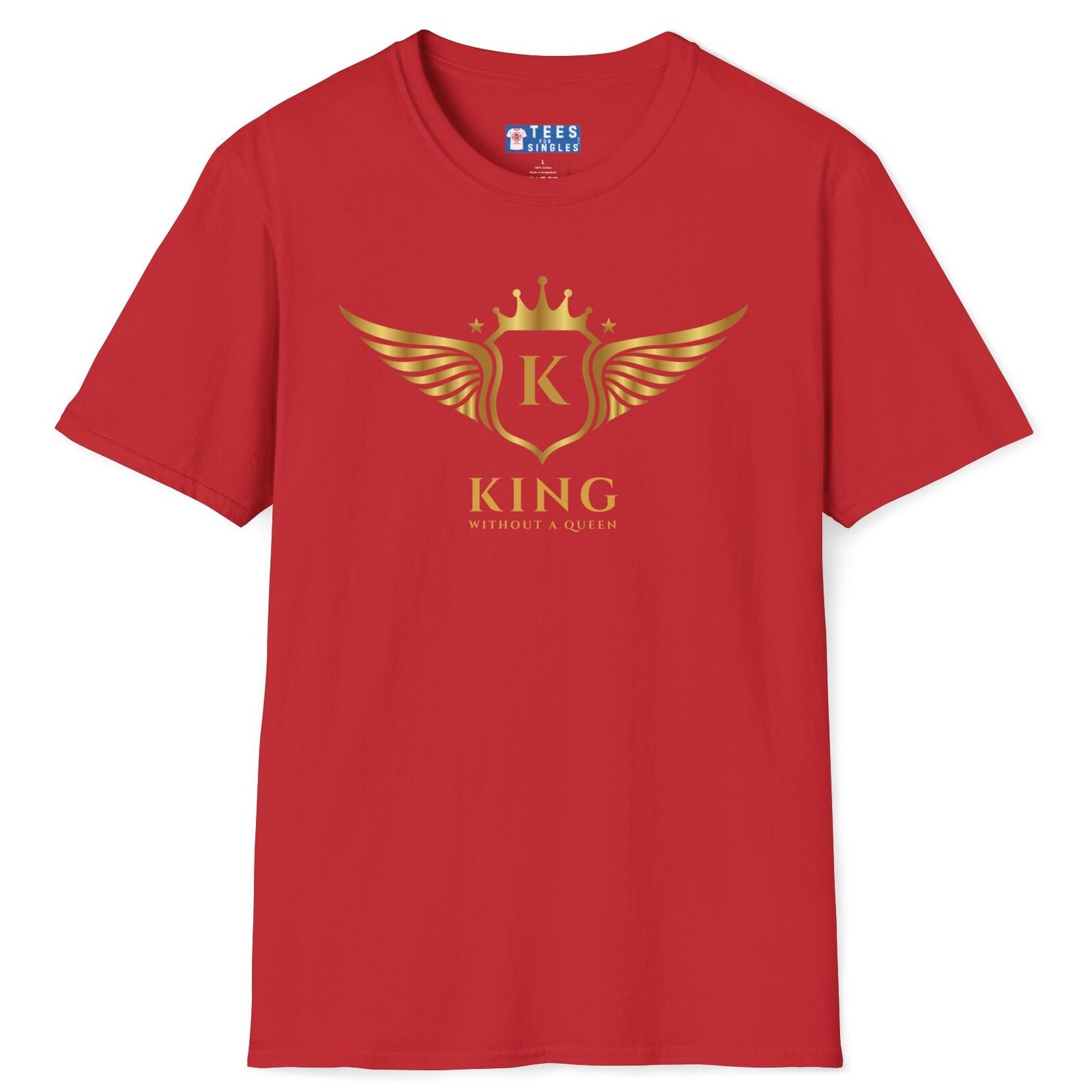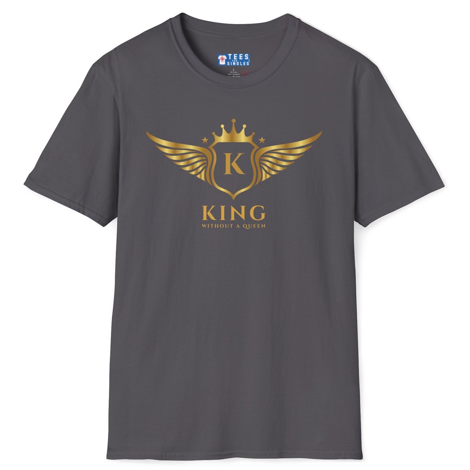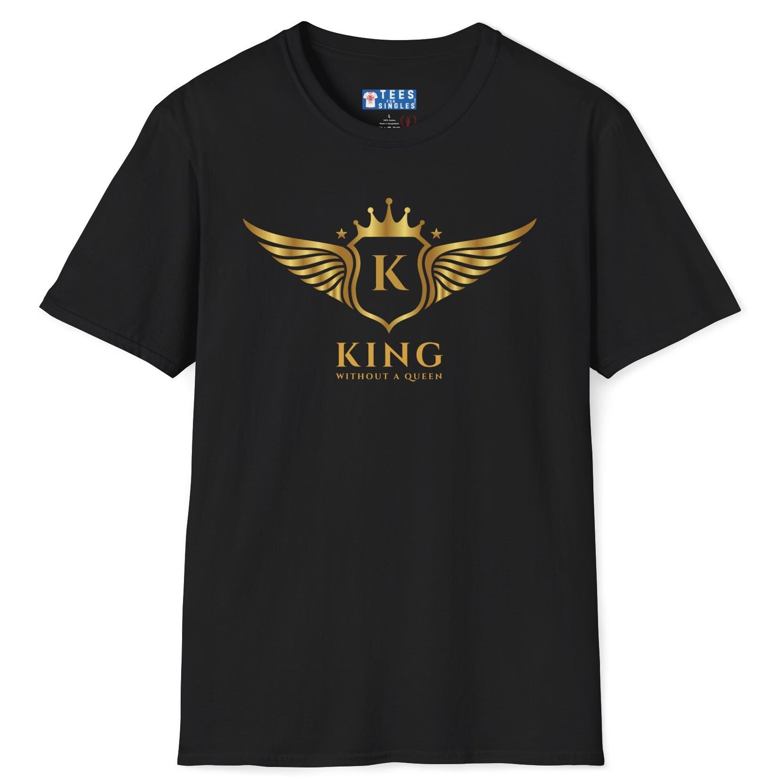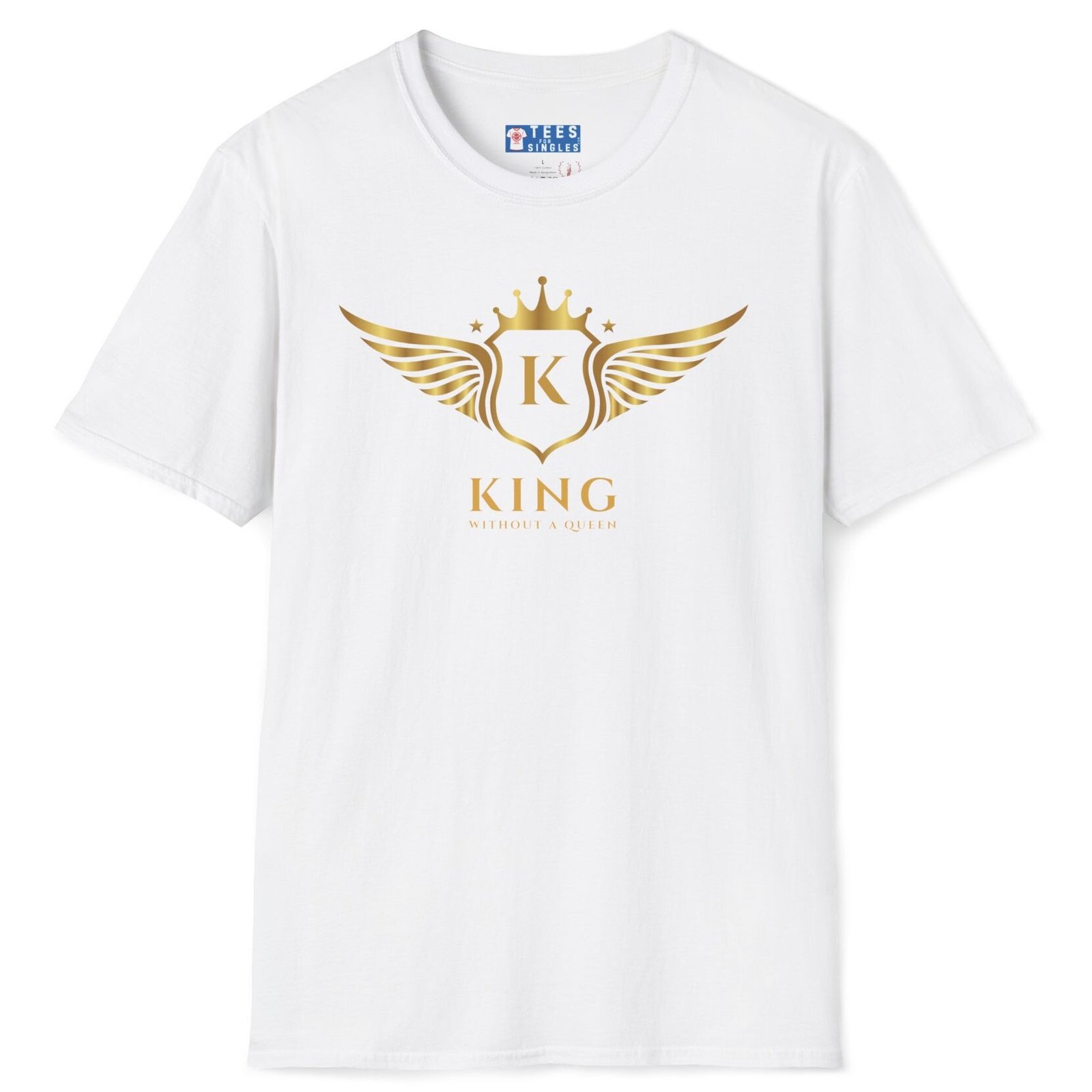 Keywords/Tags: King Without A Queen, Single and Ready, Relationship Status Tee, Statement T-Shirt, Men’s Graphic Tee, Conversation Starter Shirt, Dating Apparel, Find Your People, Connect In Person, Post-COVID Connections, Premium Gildan 64000, Lightweight Tee, Tees For Singles, Self-Expression, Friendship Tee, Make New Friends, Confidence Boosting, Unique Tee, Graphic Apparel