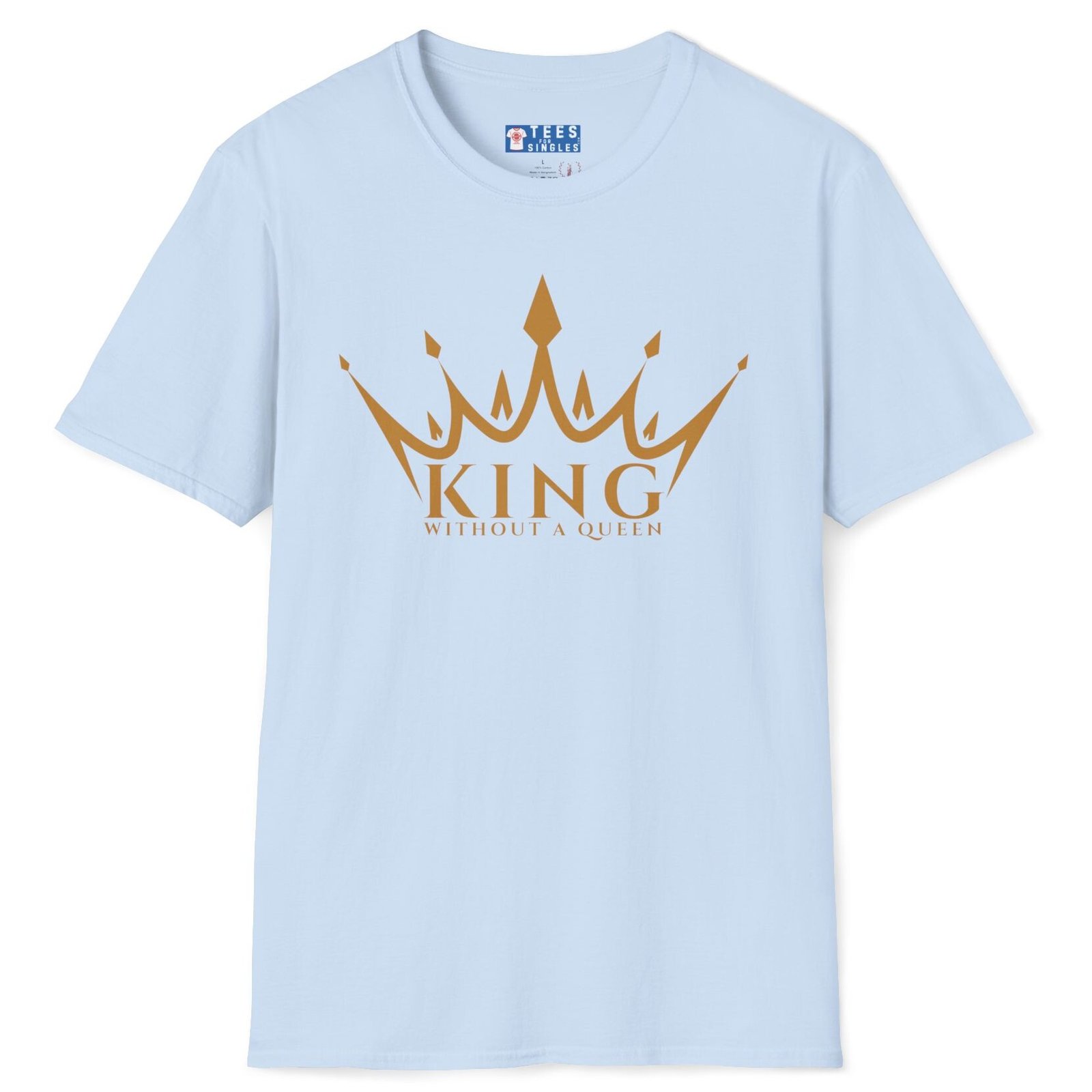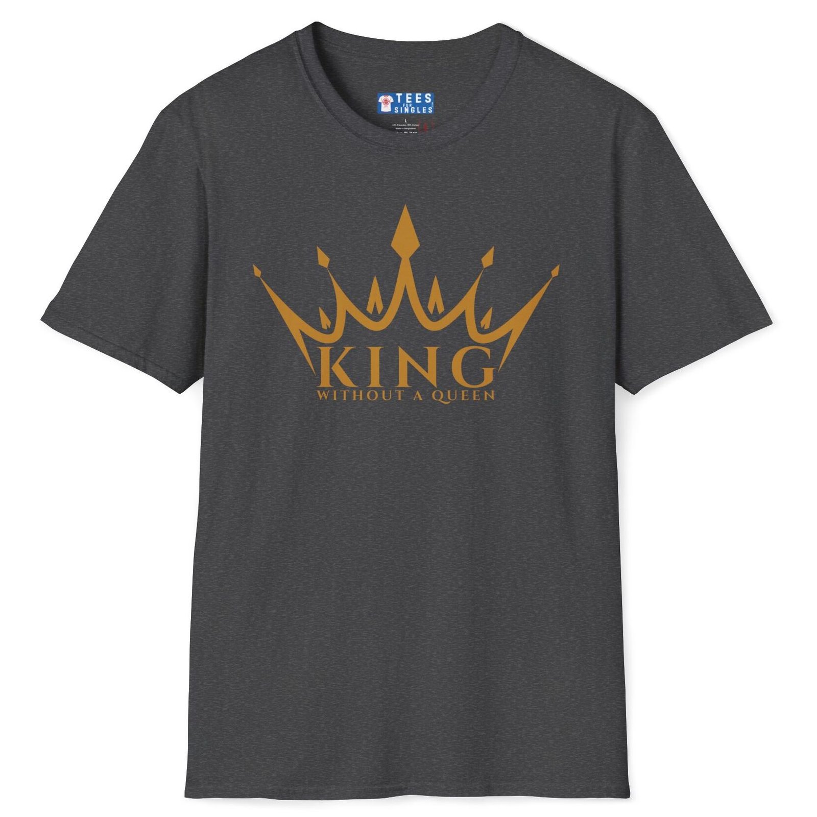 Tags: king without queen, single king shirt, crown graphic tee, bold royal statement, Gildan 64000 premium, Vox Nova Clothing, bachelor life top, conversation starter tee, post covid dating apparel, confident men’s fashion, royal singlewear, spark connection shirt, lightweight cotton tee