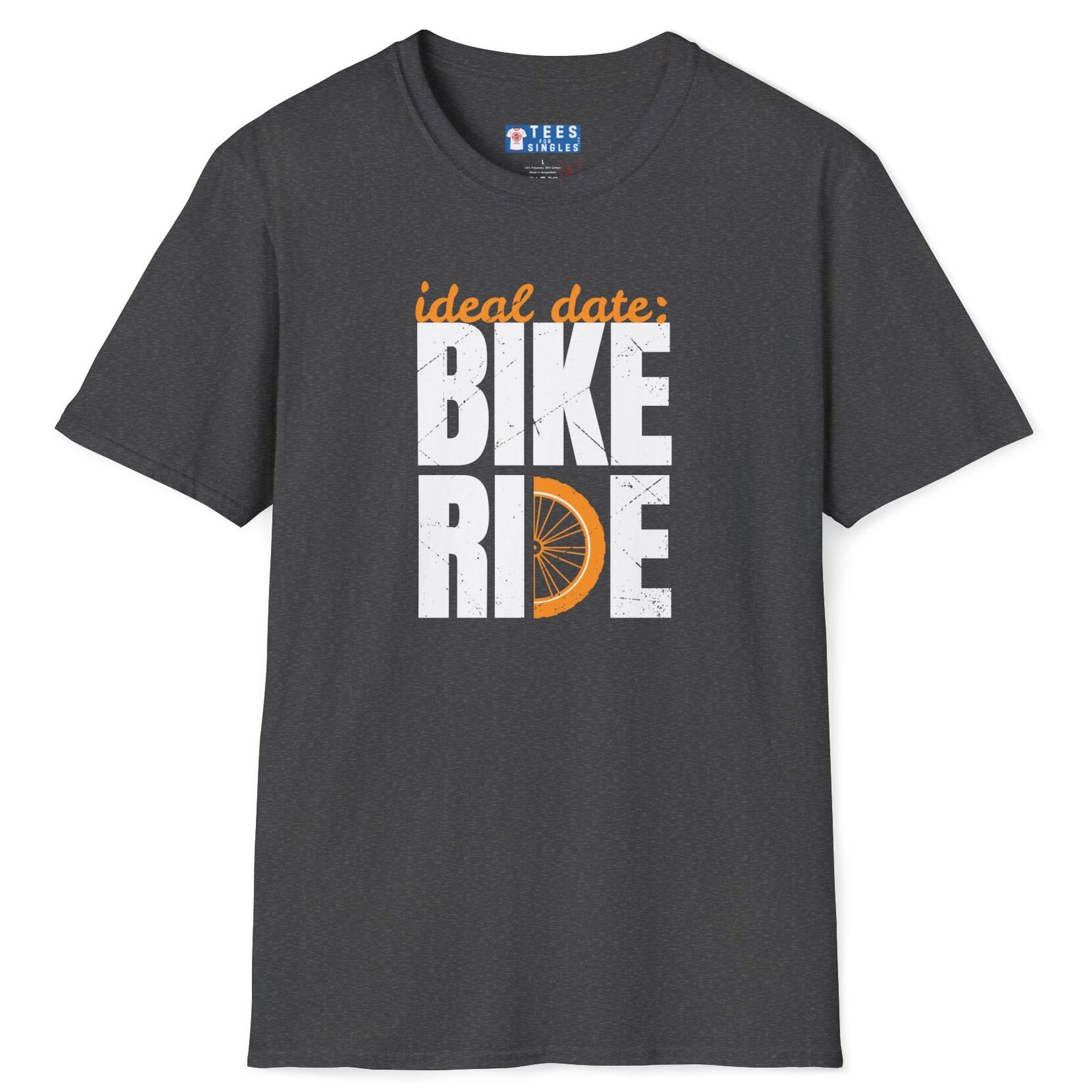 Why just match online when you can match cadence? The Ideal Date Bike Ride tee shouts your favorite first-date idea in cracked-ink block letters, with an orange wheel tucked into the word RIDE for extra pop. Wear it to cafés, park loops, or brewery patios and watch fellow cyclists roll up to say “When and where?”