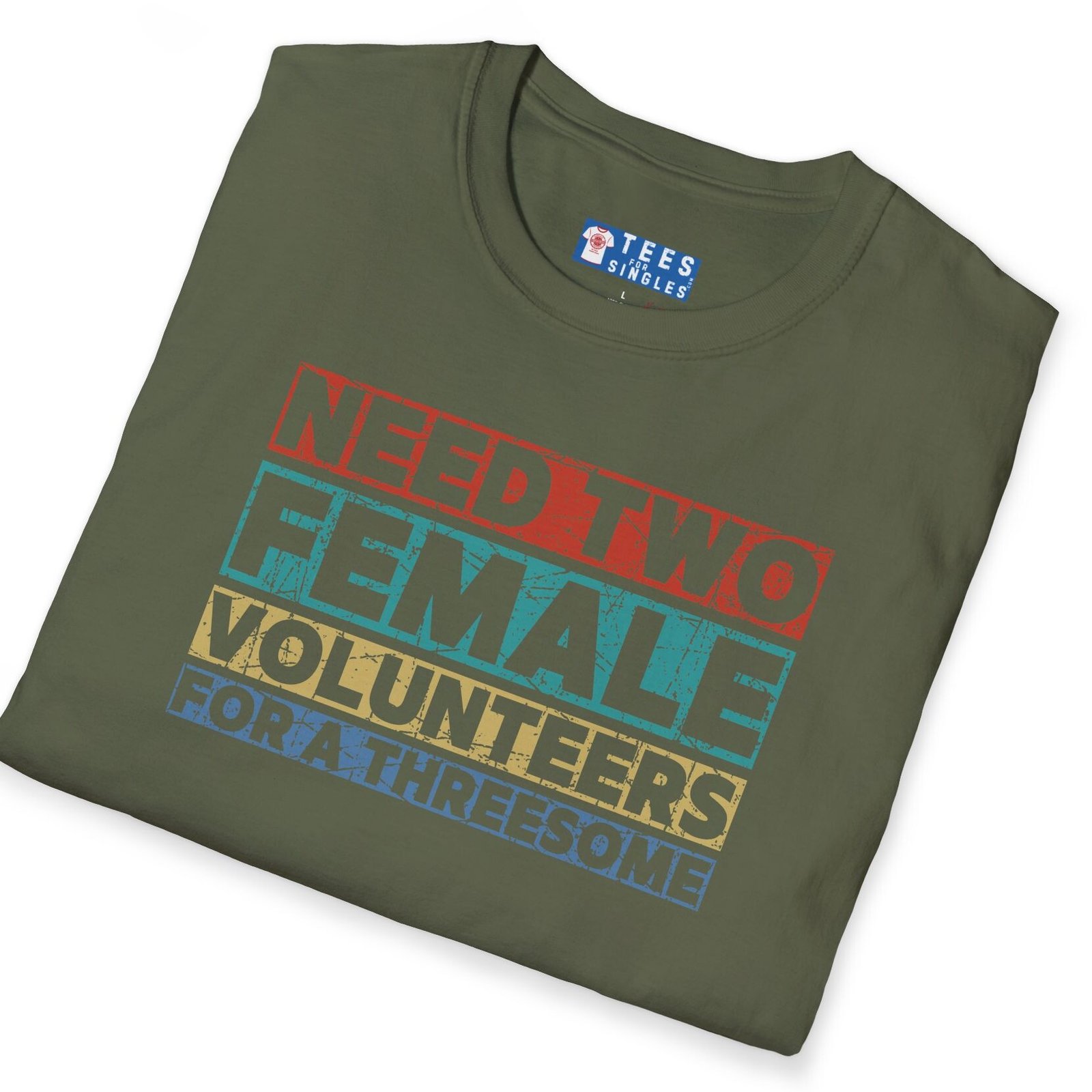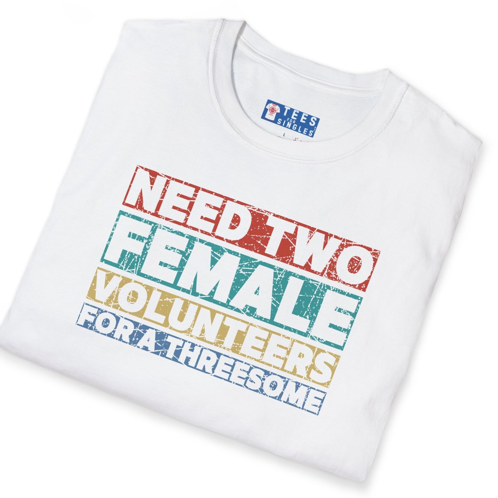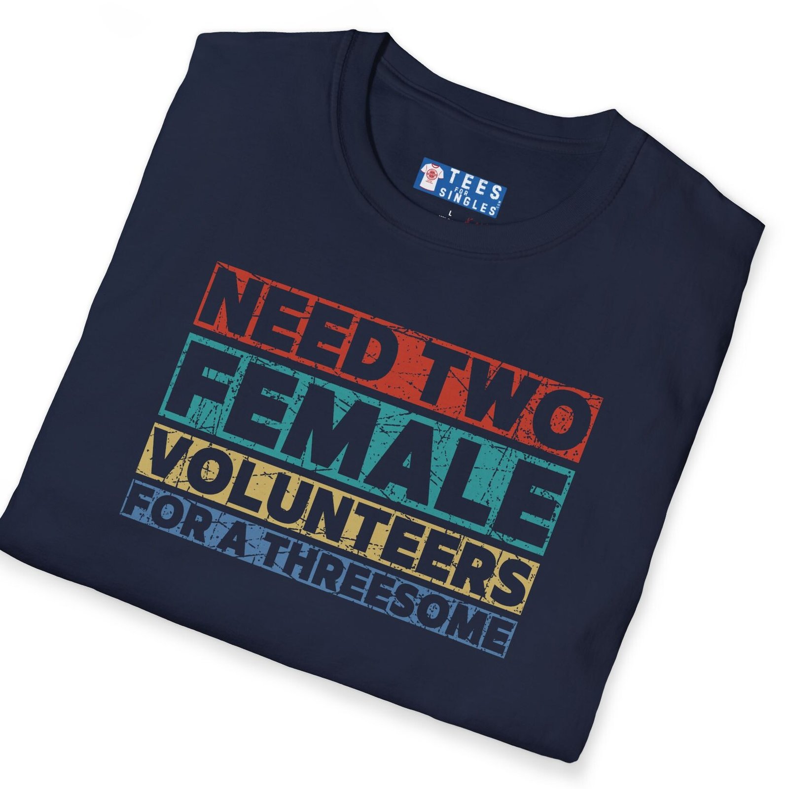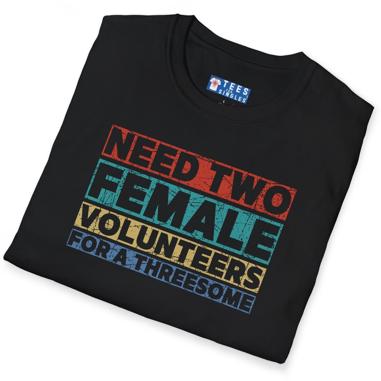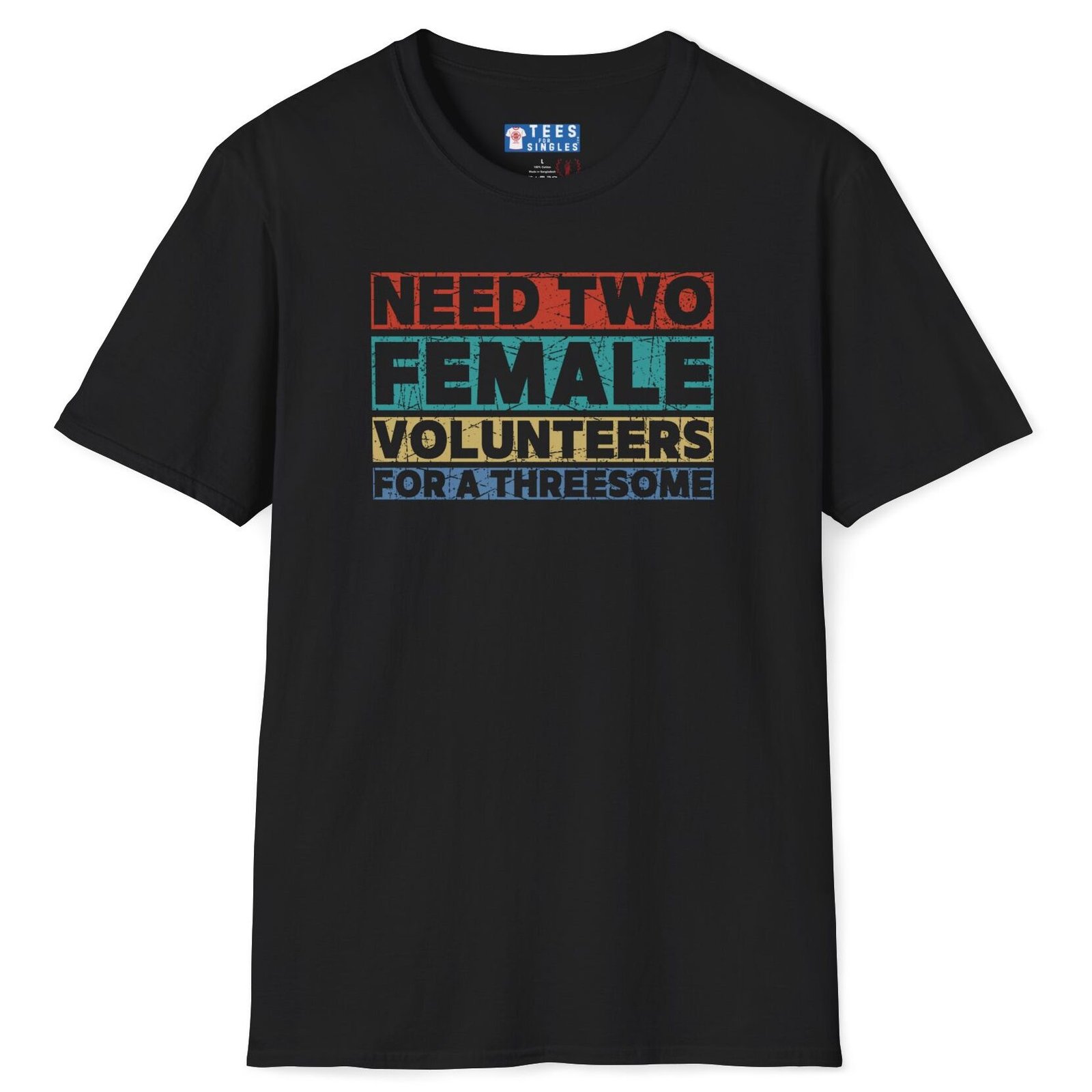 You never know… Inject some vibrant humor into your wardrobe with our “Need Two Female Volunteers” Premium T-Shirt! π¨ A colorful, bold statement for those ready to spark joy and conversations.