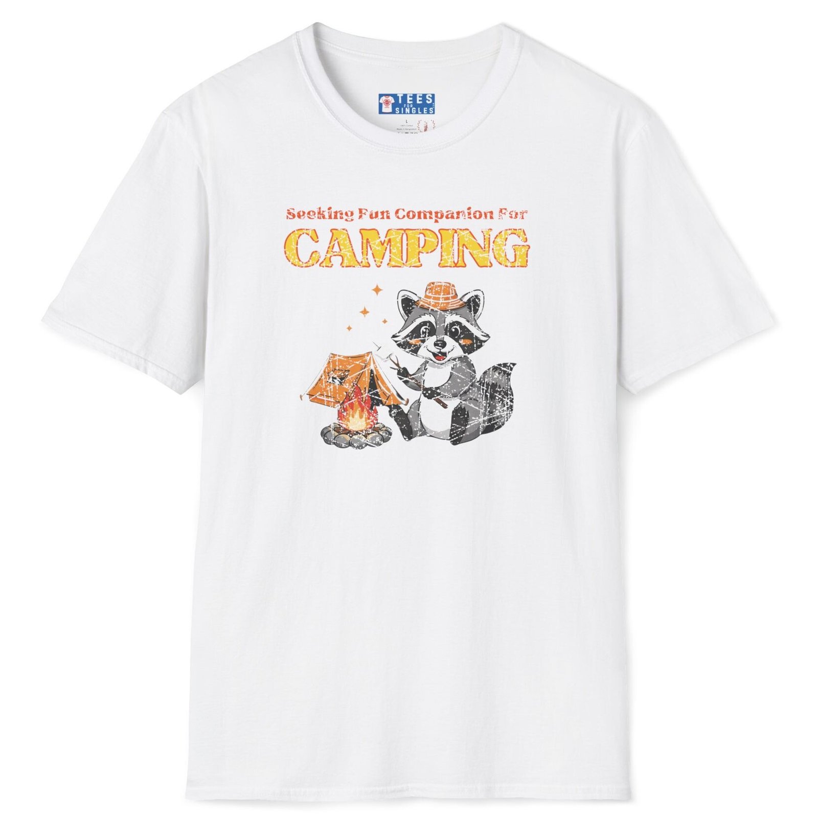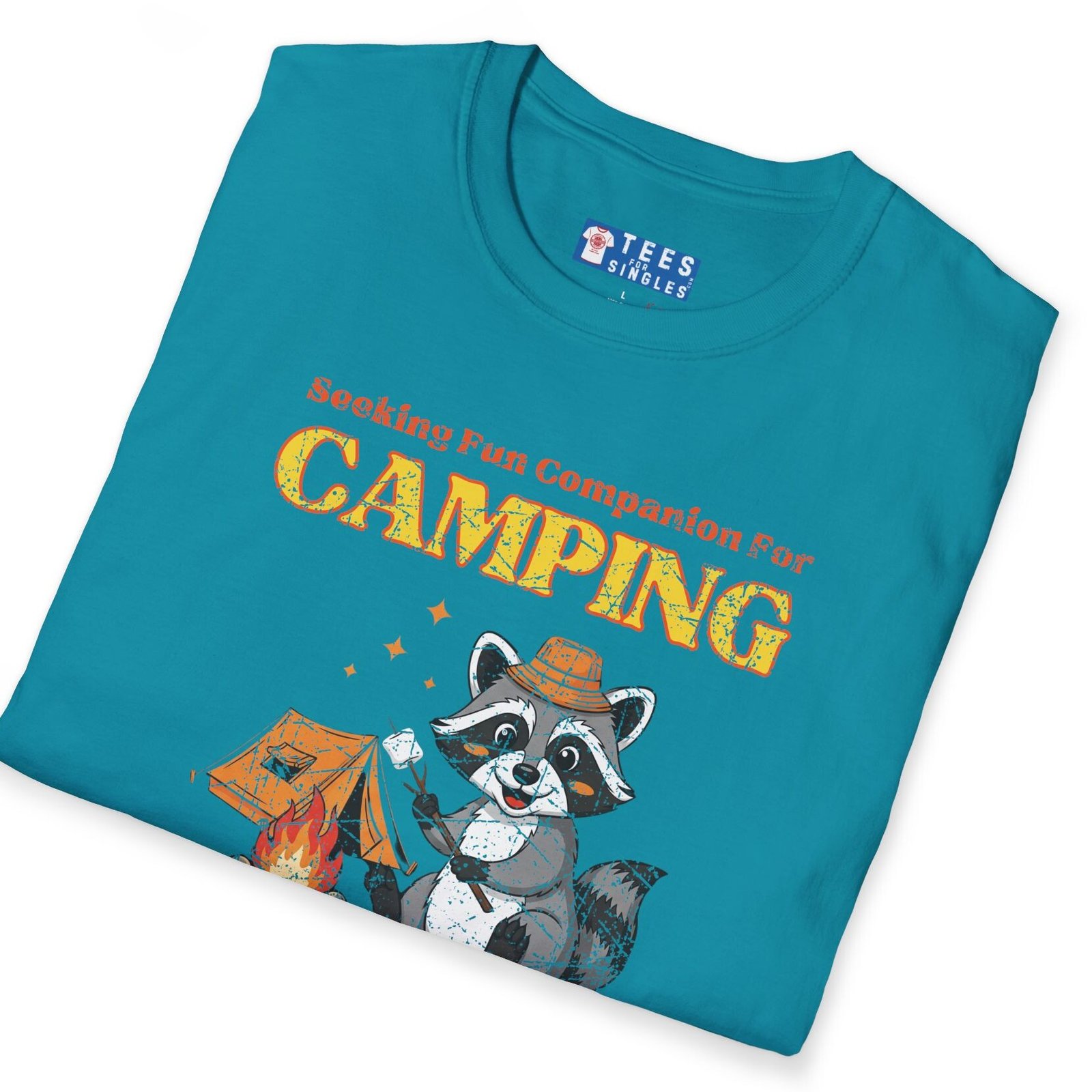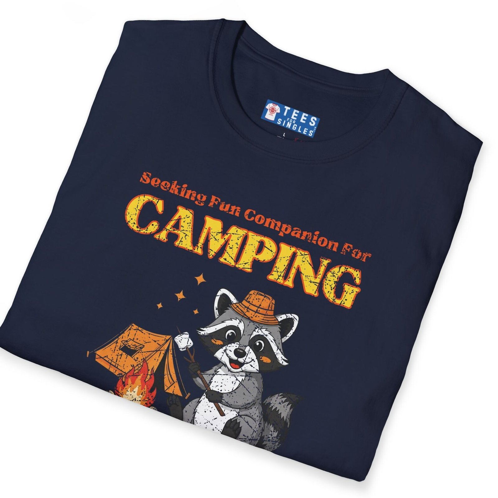 Keywords/Tags: camping shirt, funny camping tee, seeking fun companion shirt, raccoon campfire t-shirt, outdoor lovers tee, conversation starter shirt, flirty camping tee, s’mores shirt, post covid dating shirt, premium lightweight cotton tee, adventure dating shirt