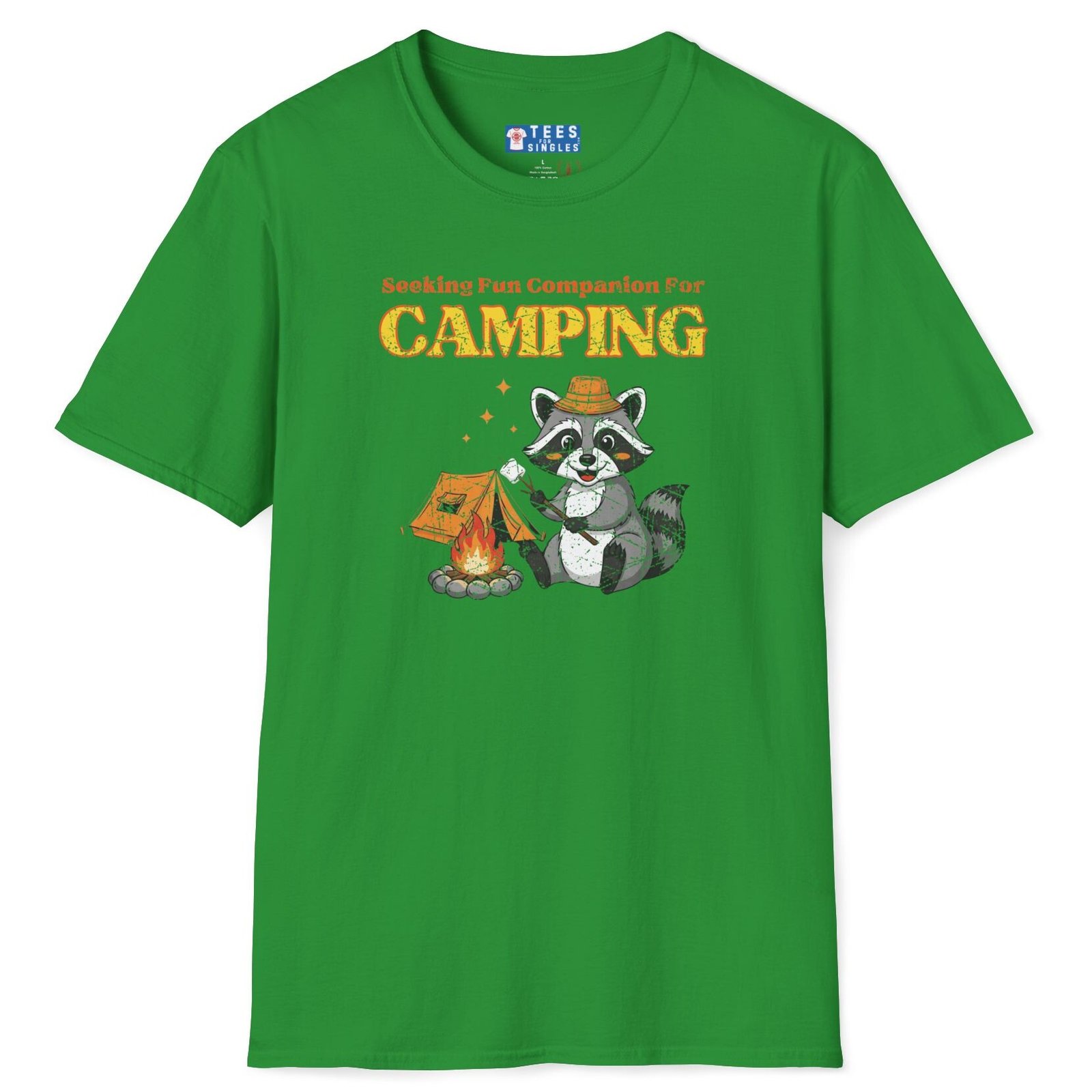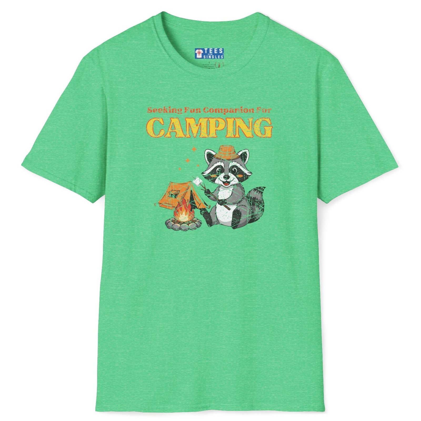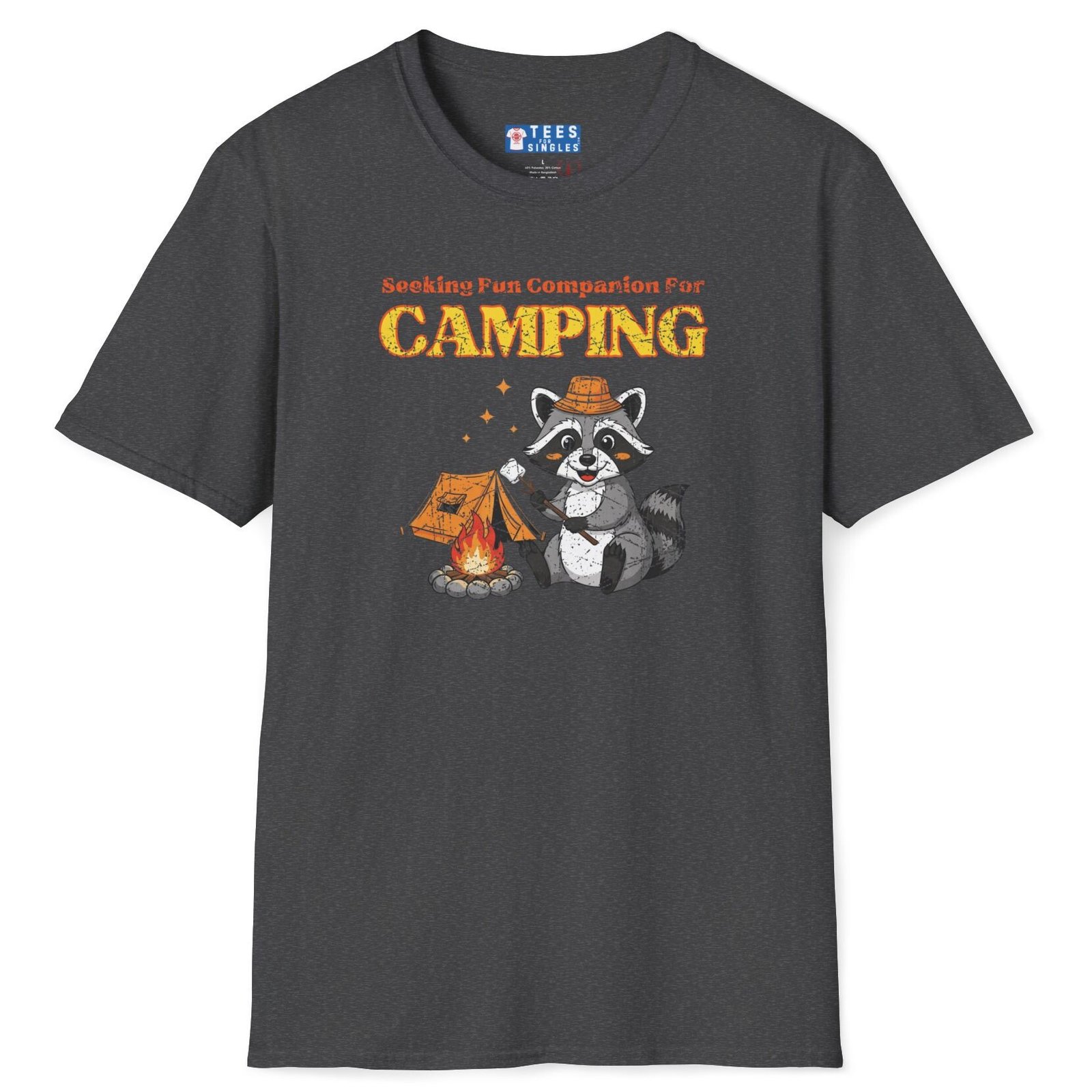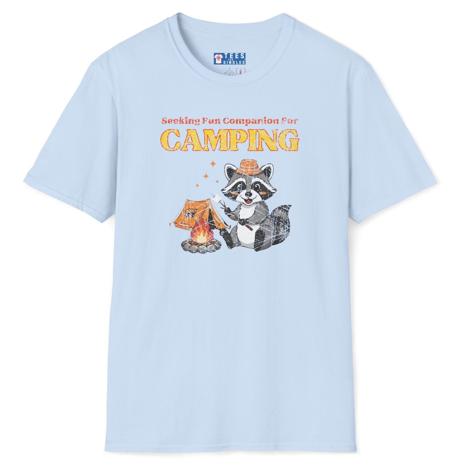 Keywords/Tags: camping shirt, funny camping tee, seeking fun companion shirt, raccoon campfire t-shirt, outdoor lovers tee, conversation starter shirt, flirty camping tee, s’mores shirt, post covid dating shirt, premium lightweight cotton tee, adventure dating shirt