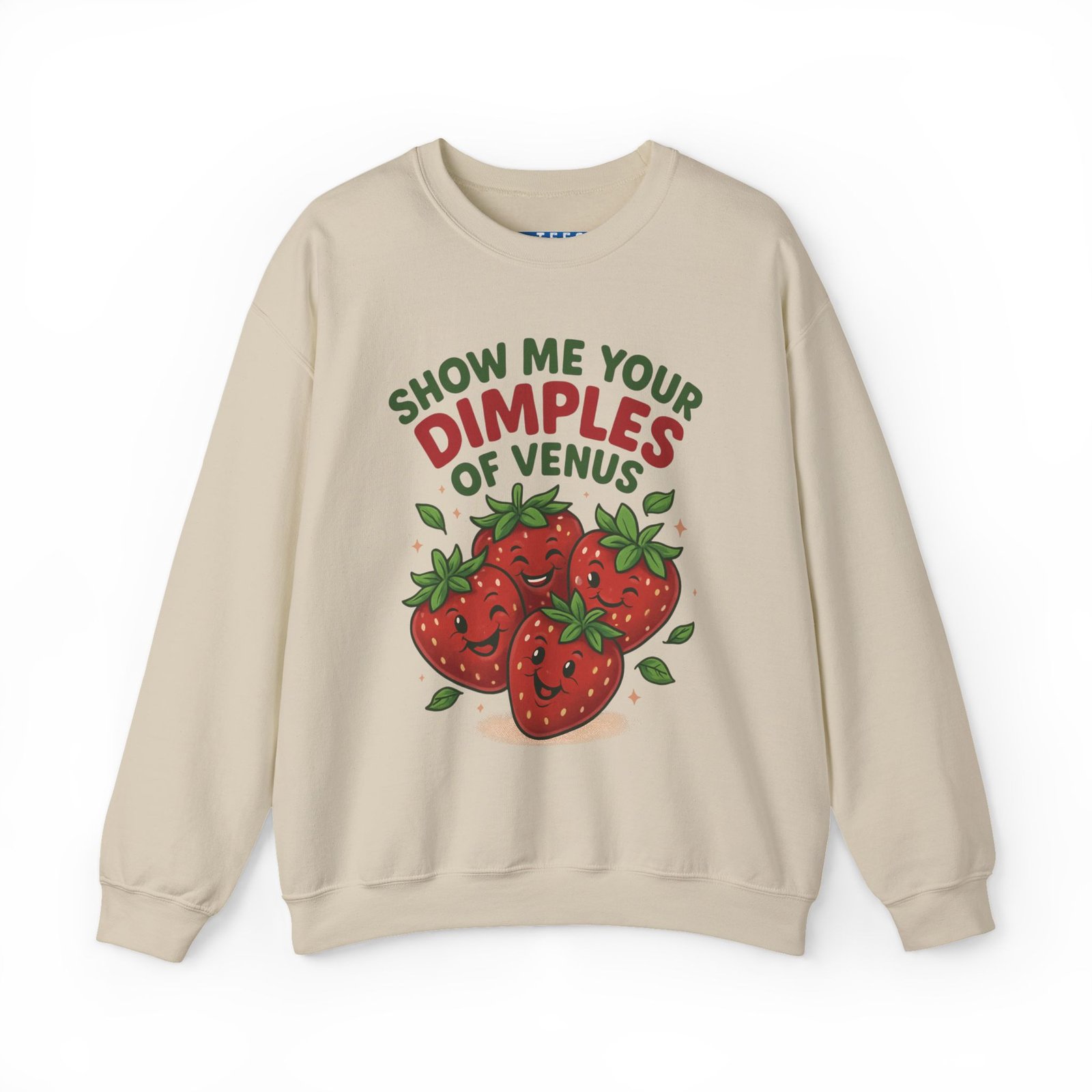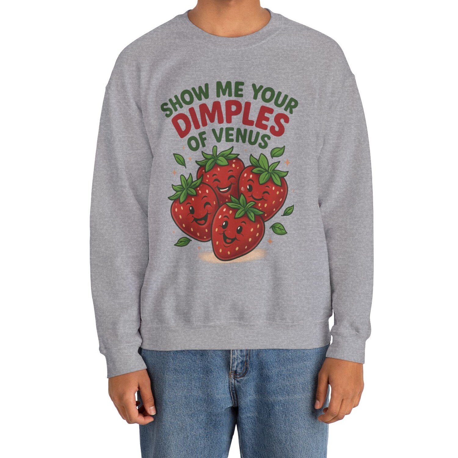 Keywords: dimples of venus shirt, flirty tee for men, cute strawberry shirt, funny dating shirt, playful premium tee, conversation starter shirt, men’s flirty graphic tee, icebreaker shirt, unique men’s tee, funny fruit shirt