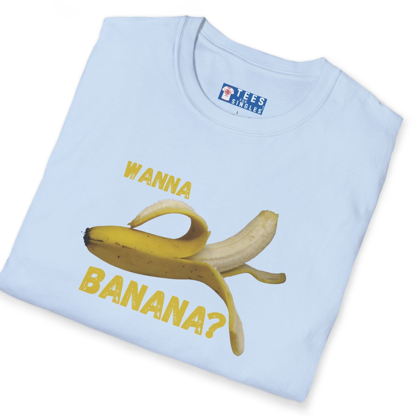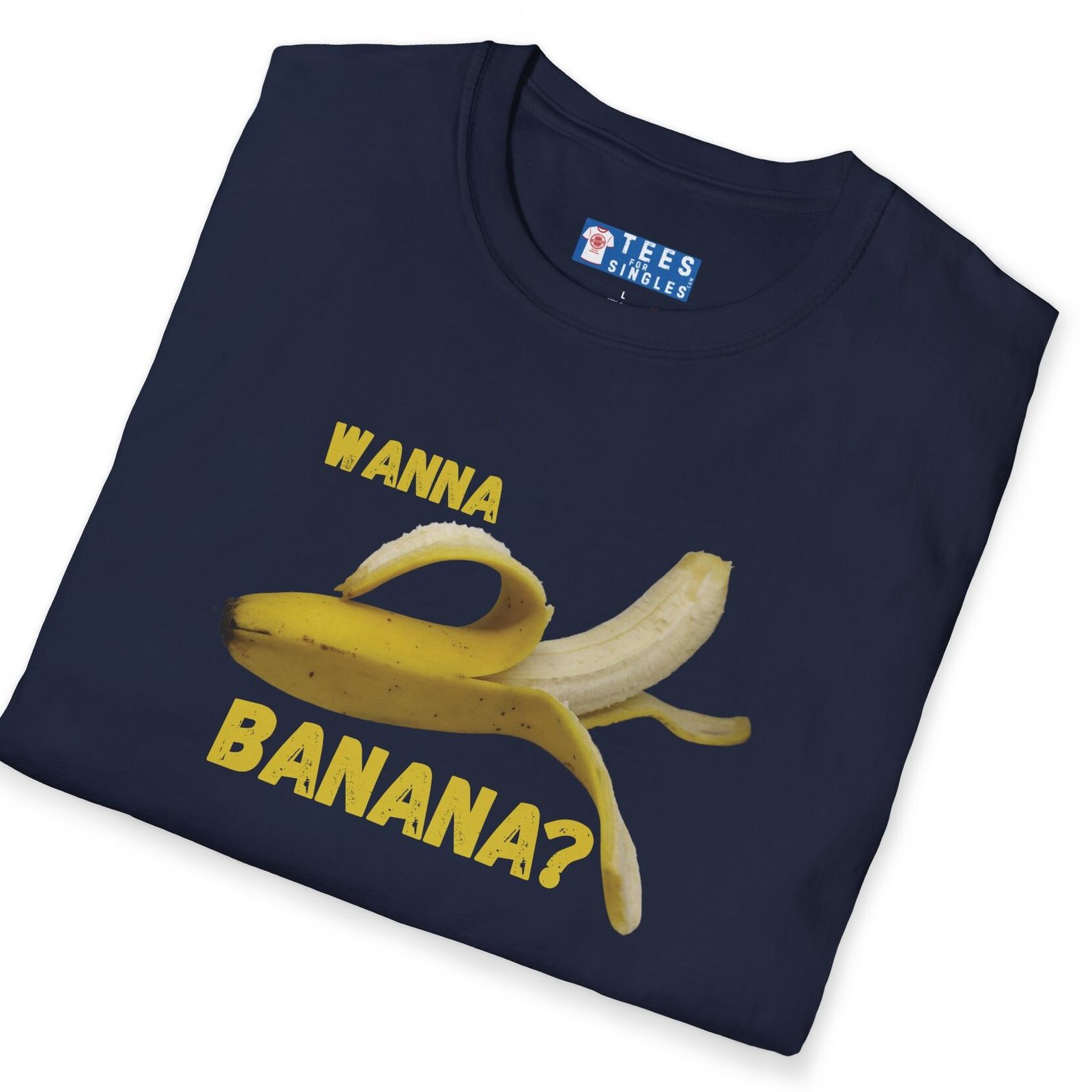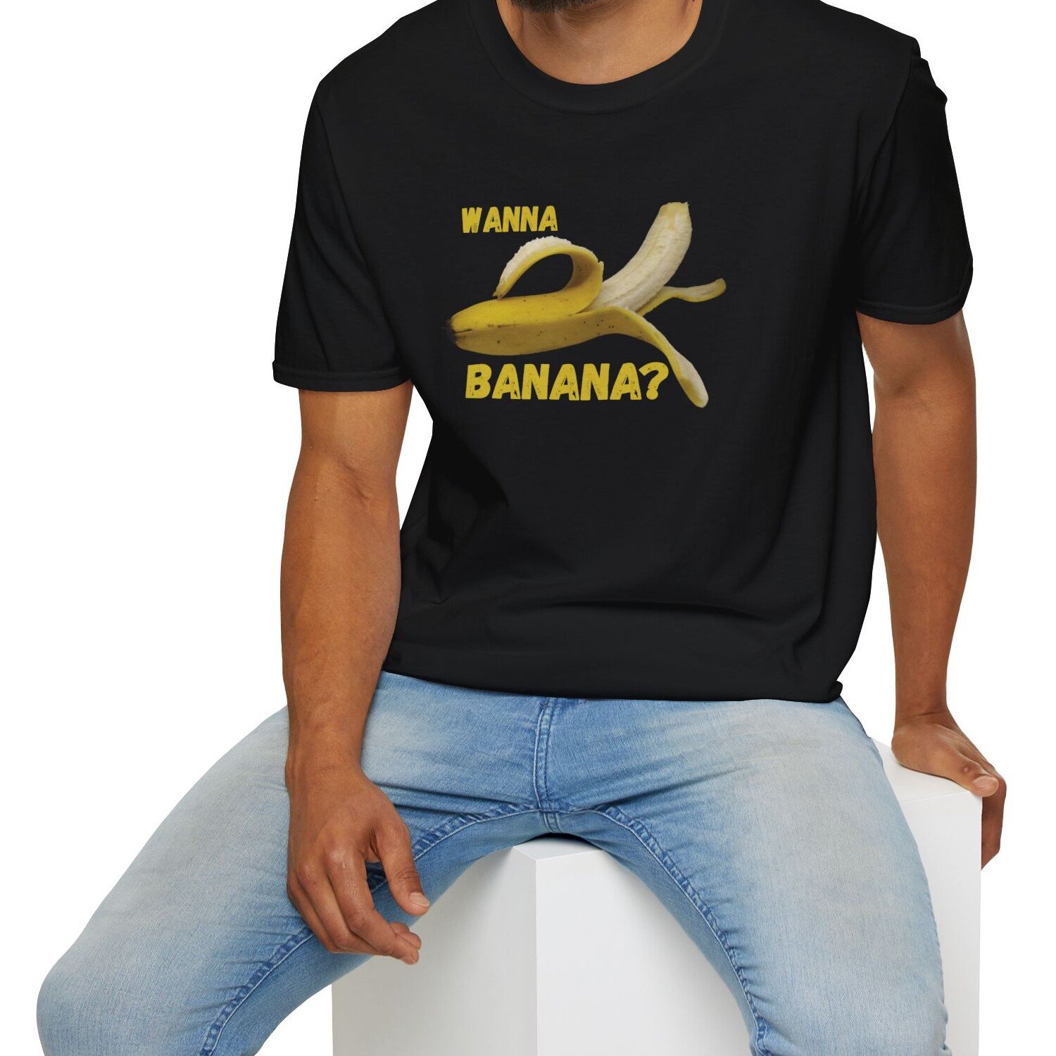 Keywords/Tags: wanna banana shirt, funny conversation starter, casual tee, Gildan 64000 tee, humor shirt, banana tee, icebreaker shirt, quirky graphic tee, fun shirt, lighthearted fashion, dating shirt, connection starter, friendship tee, premium funny shirt