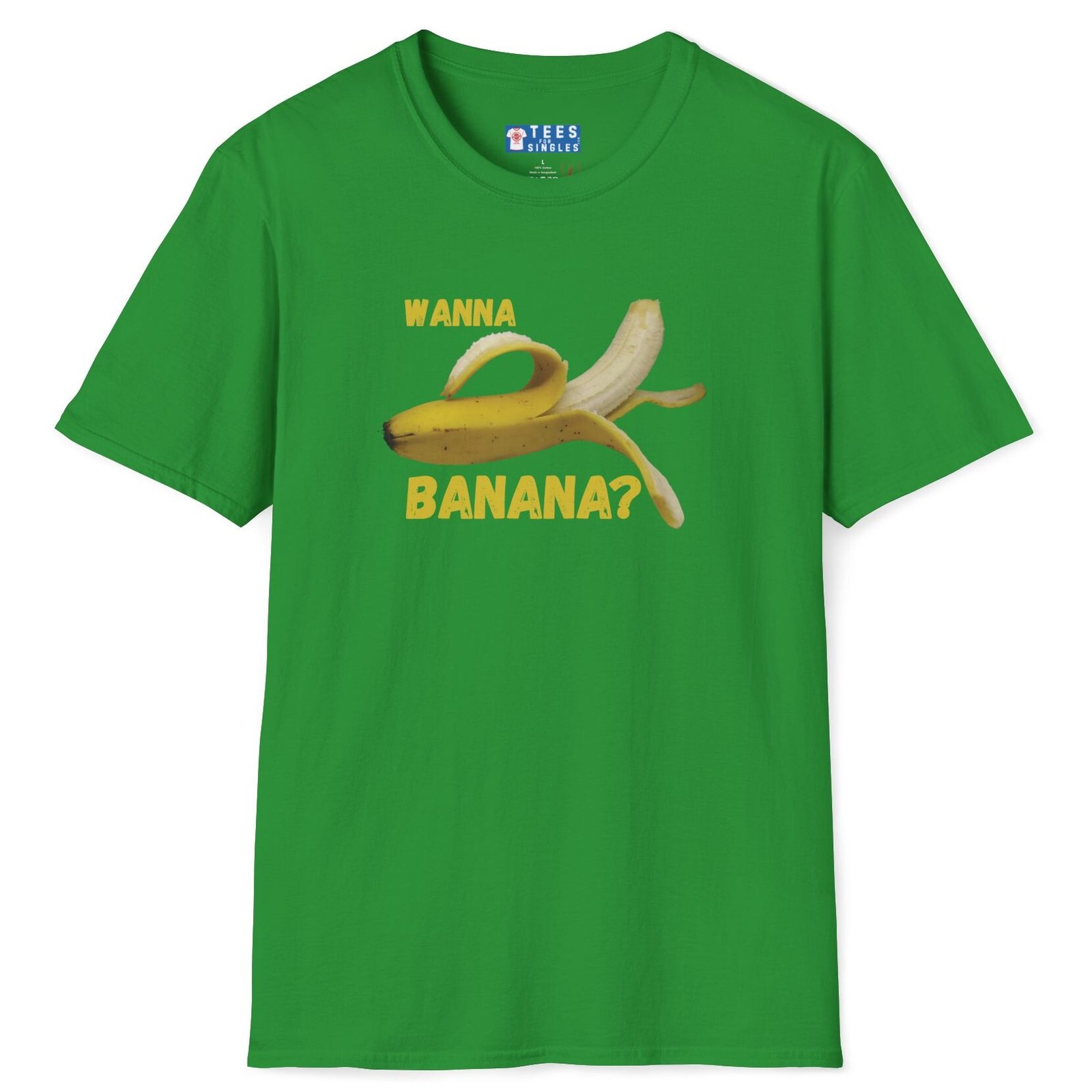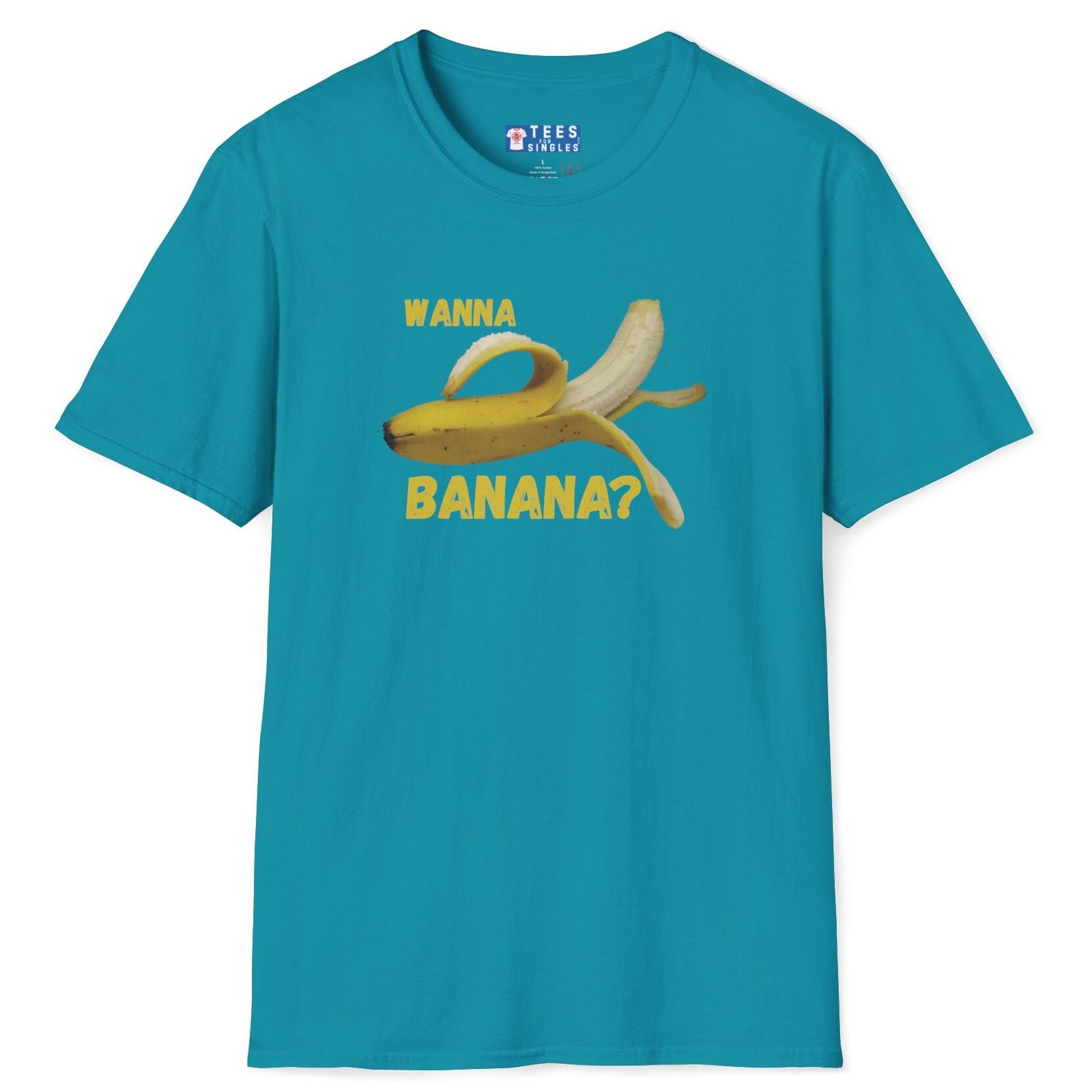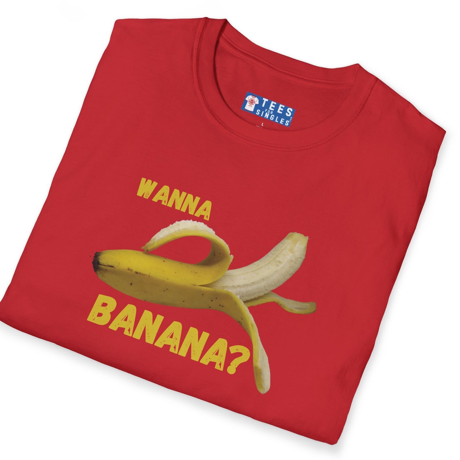 Keywords/Tags: wanna banana shirt, funny conversation starter, casual tee, Gildan 64000 tee, humor shirt, banana tee, icebreaker shirt, quirky graphic tee, fun shirt, lighthearted fashion, dating shirt, connection starter, friendship tee, premium funny shirt